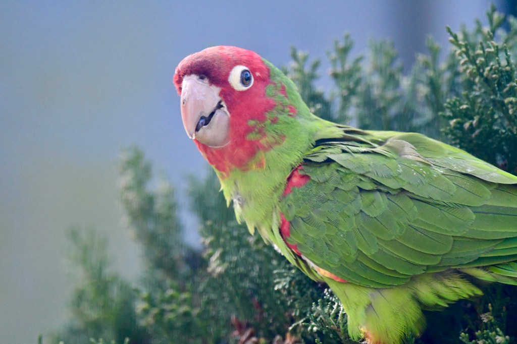 Red Masked Parakeet looking through my window.