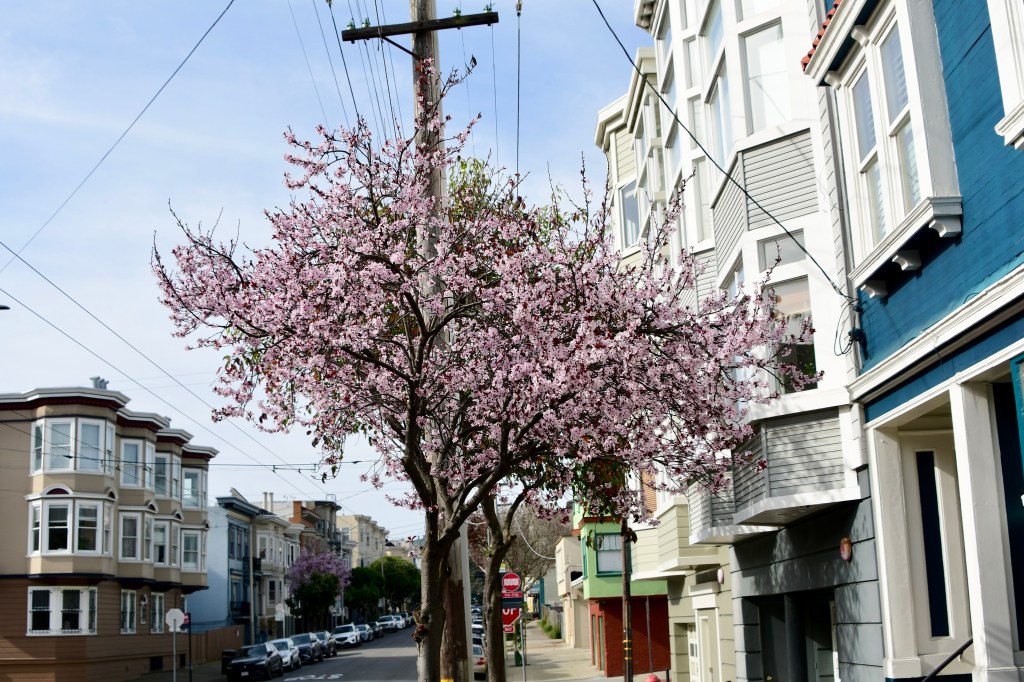 Prunus blossom on HayesExcellent. Mexican place just 10 minutes stagger from the house. https://manitascafe.com/menuPlato Tipico.Just across the road from Manitas. It is run by a hilarious Chines couple who have been there for 37 years. They make excellent Lox Bagels.Watching birdies is highly recommended by my PT – physical therapy – specialist. Chesnut Backed Chickadee.