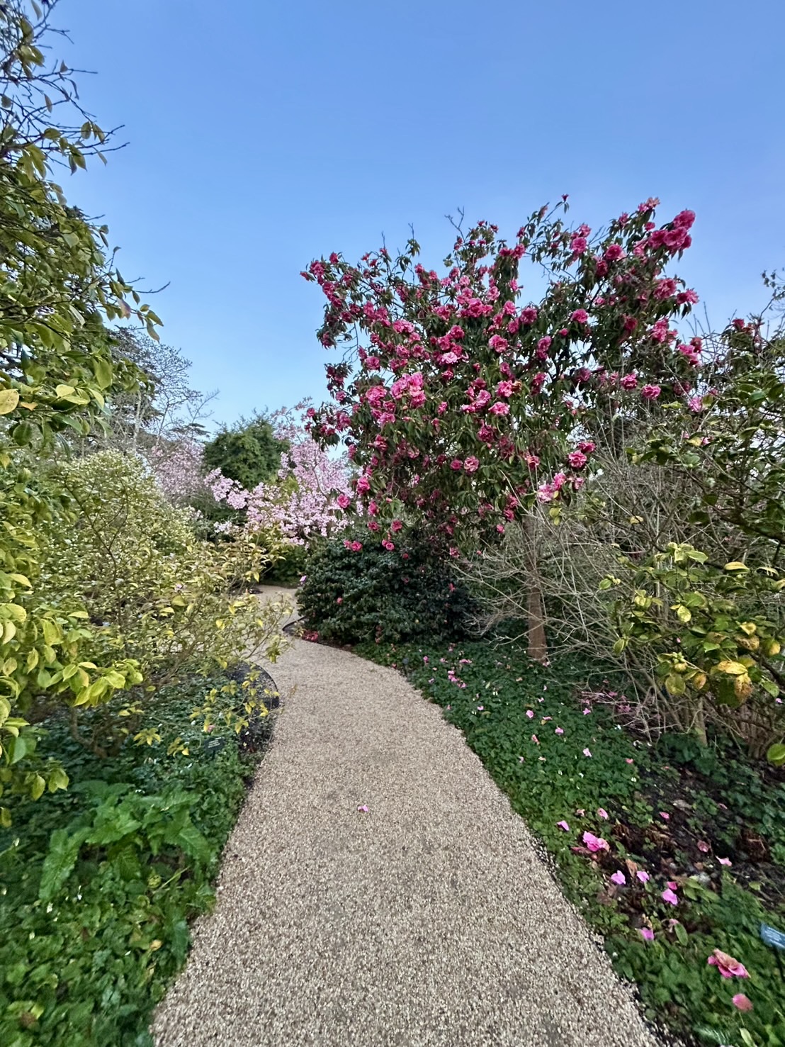 James built this path. The area was previously over-run.Clever James!Under the spreading Magnolia tree.Camelias.Beautiful place.James’ Toro!