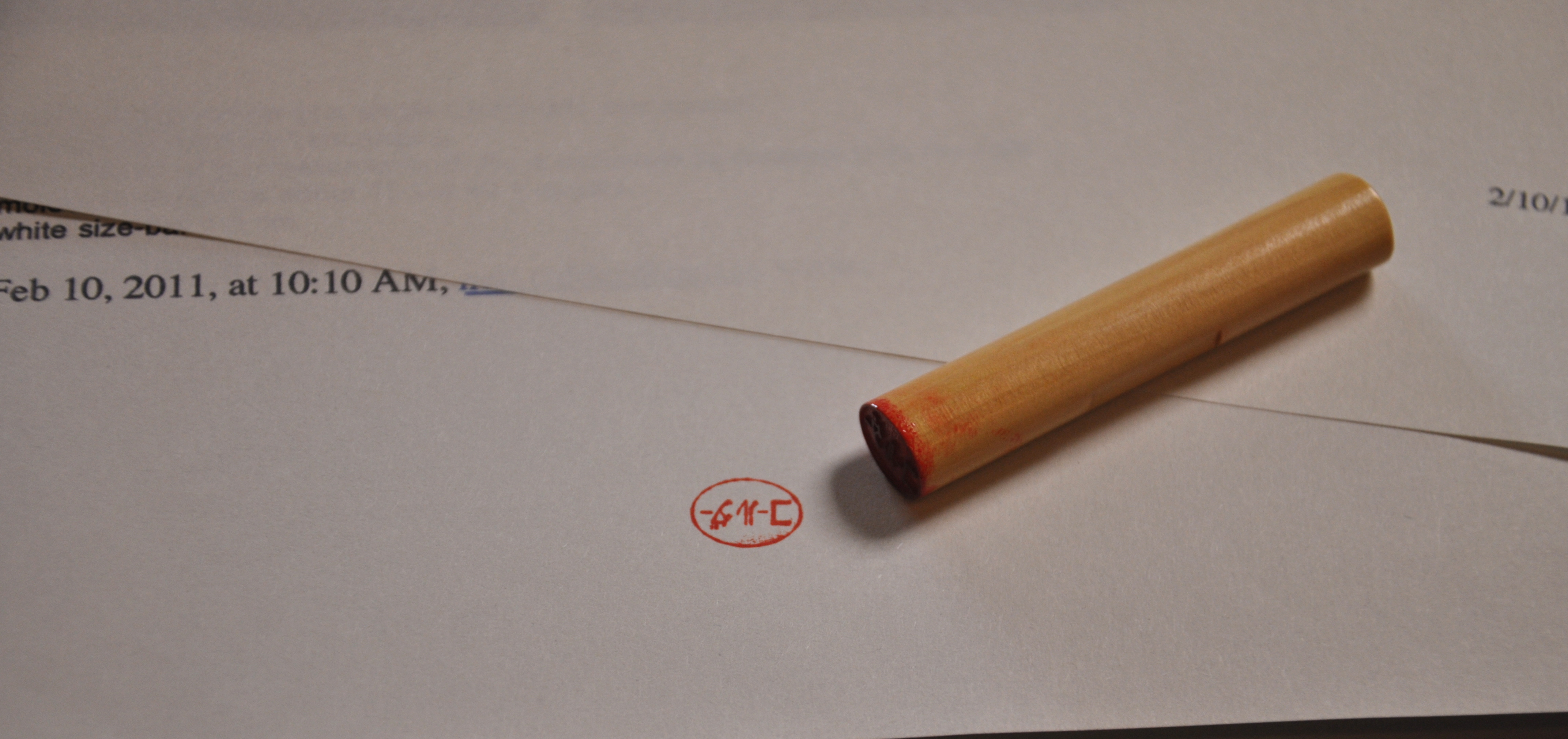 So this is fun. In Okinawa and I guess in the rest of Japan, a thing you gotta have is an ‘Inkan’. This is your own personal yet official seal. To approve a document, er like a budget thing at work, um a bank check, you want to buy a car, things that in Europe or the US we would sign, here you seal. This is great. It reminds me of a big splodge of sealing wax and an angry King being forced by revolting Barons to plunge his signet ring.