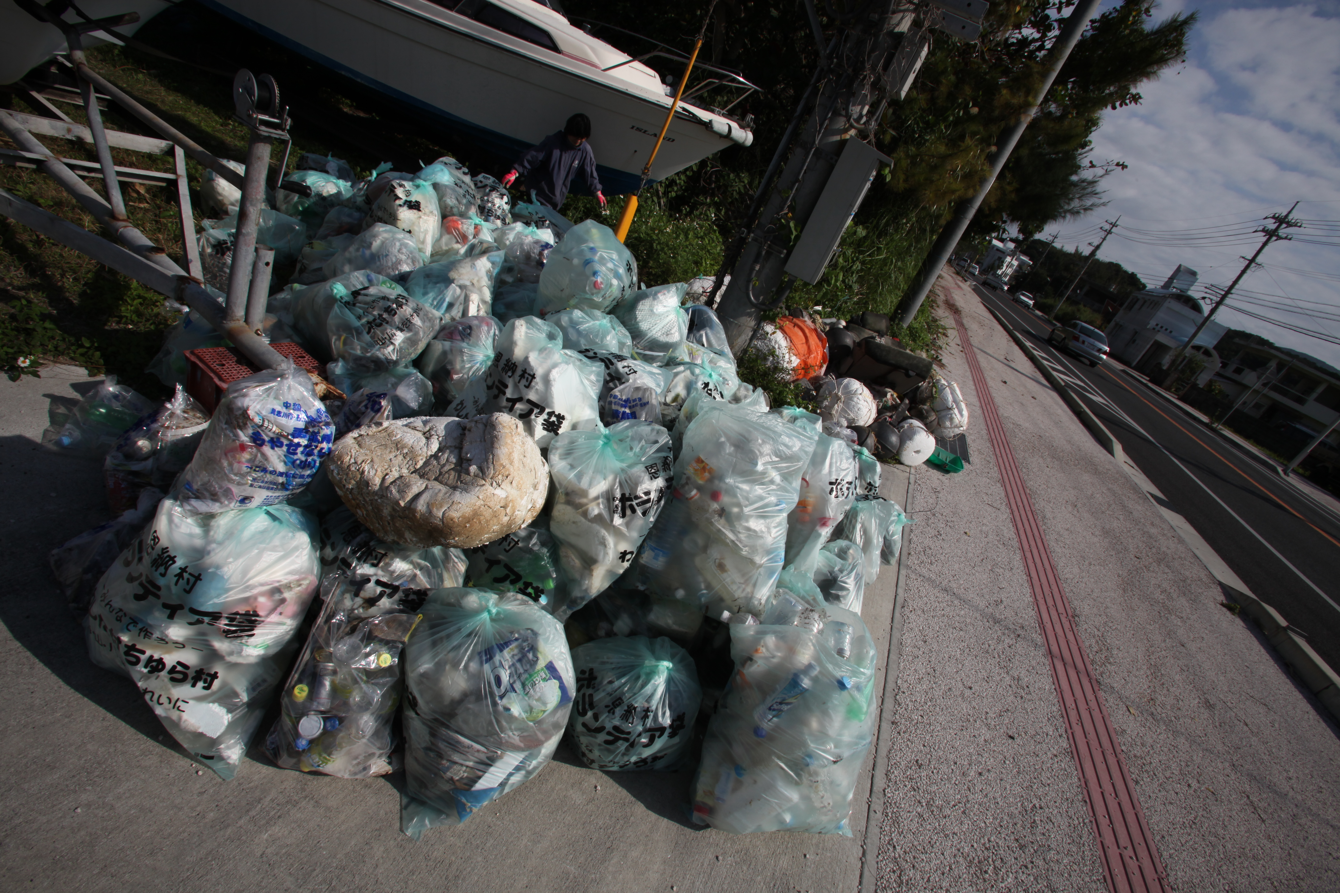 Last Sunday was beach cleaning day. About 100 volunteers showed up, were issued with special bags and gloves and hit the beach. An hour later it was spotless. So, you can see what a owl has been eating by searching through its faeces. You can learn everything about a rock star’s lifestyle by going through his/her garbage. What did I learn about Tancha by picking up beach trash? First fishing is still very strong – a lot of the detritus was fishing floats both small and large. Next, these folks drink a lot of iced tea. Next, they do not throw gold and diamonds onto the beach. Next, I am looking forward to Spring so I can start swimming in the Ocean in earnest. Next, many hands make light work.