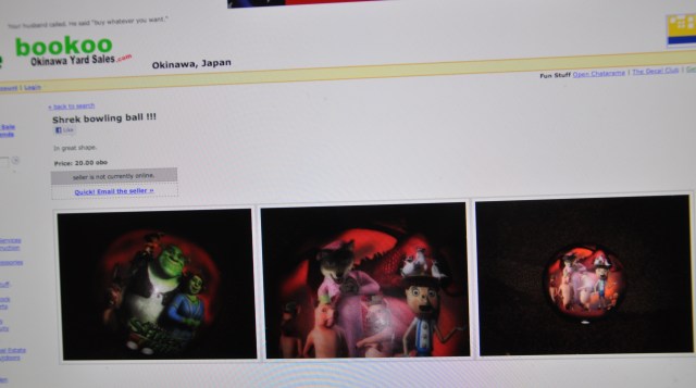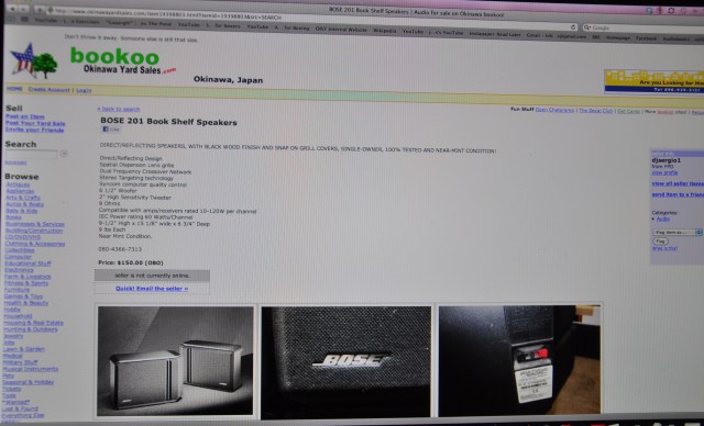 It is community. It is essentially people on the US bases in Okinawa buying and selling stuff. Prices are low, the tone is community, no ads. It has everything I want, Shrek Bowling Ball, Diving gear, a 14ft inflatable boat with a 25 horse Mercury motor, sofas, home gyms, TVs, Ipod speakers, Yeeha!