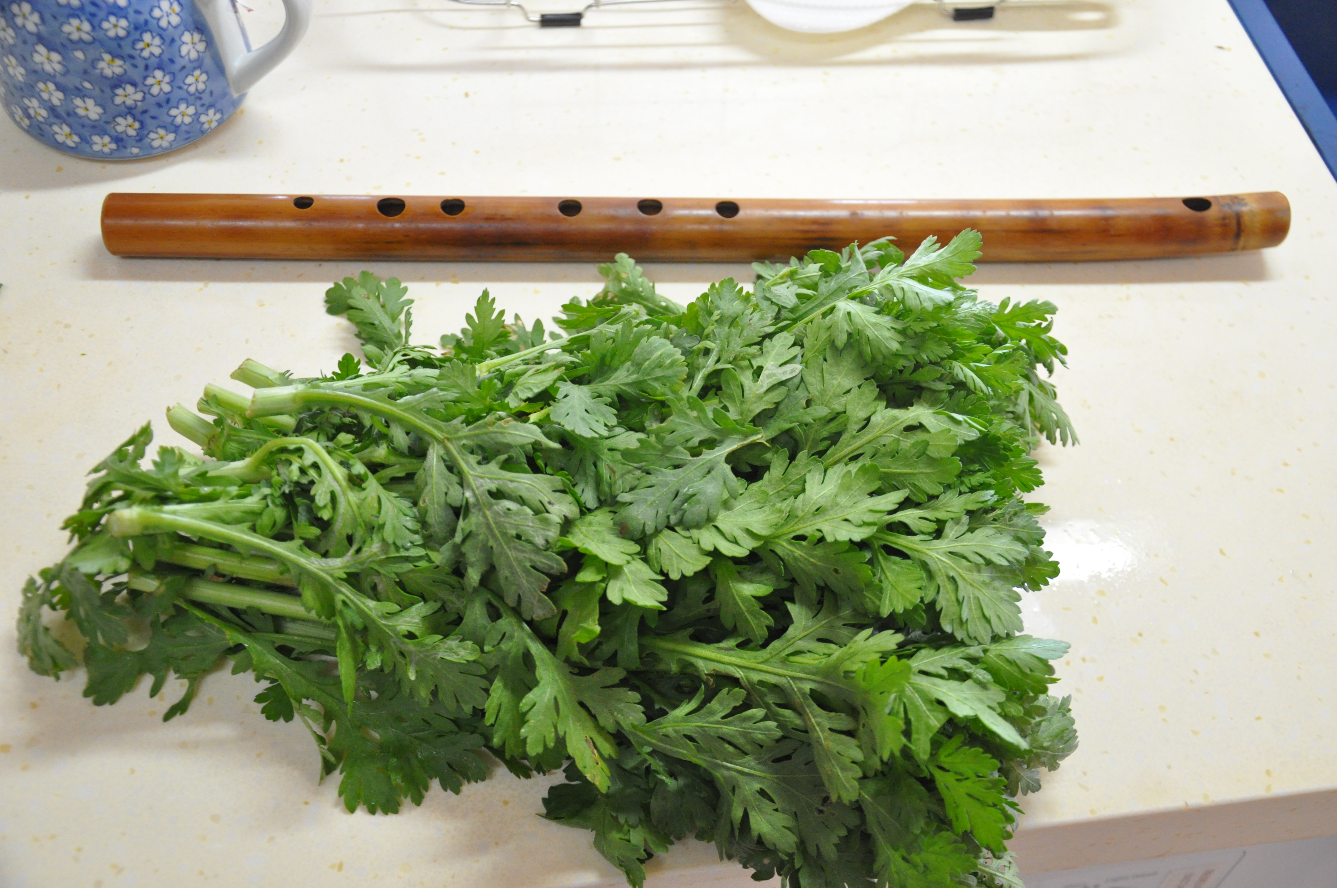 I bet that old lady was leaving out a bit in her cooking advice for the greens. Might be worth experimenting with stir frying them with a bit of garlic and ginger and a splash of soy sauce. Or even better some fish sauce, nam pla, if there’s a shop around that sells Thai/Vietnamese stuff. Mind you – fish sauce is my answer to most culinary problems.