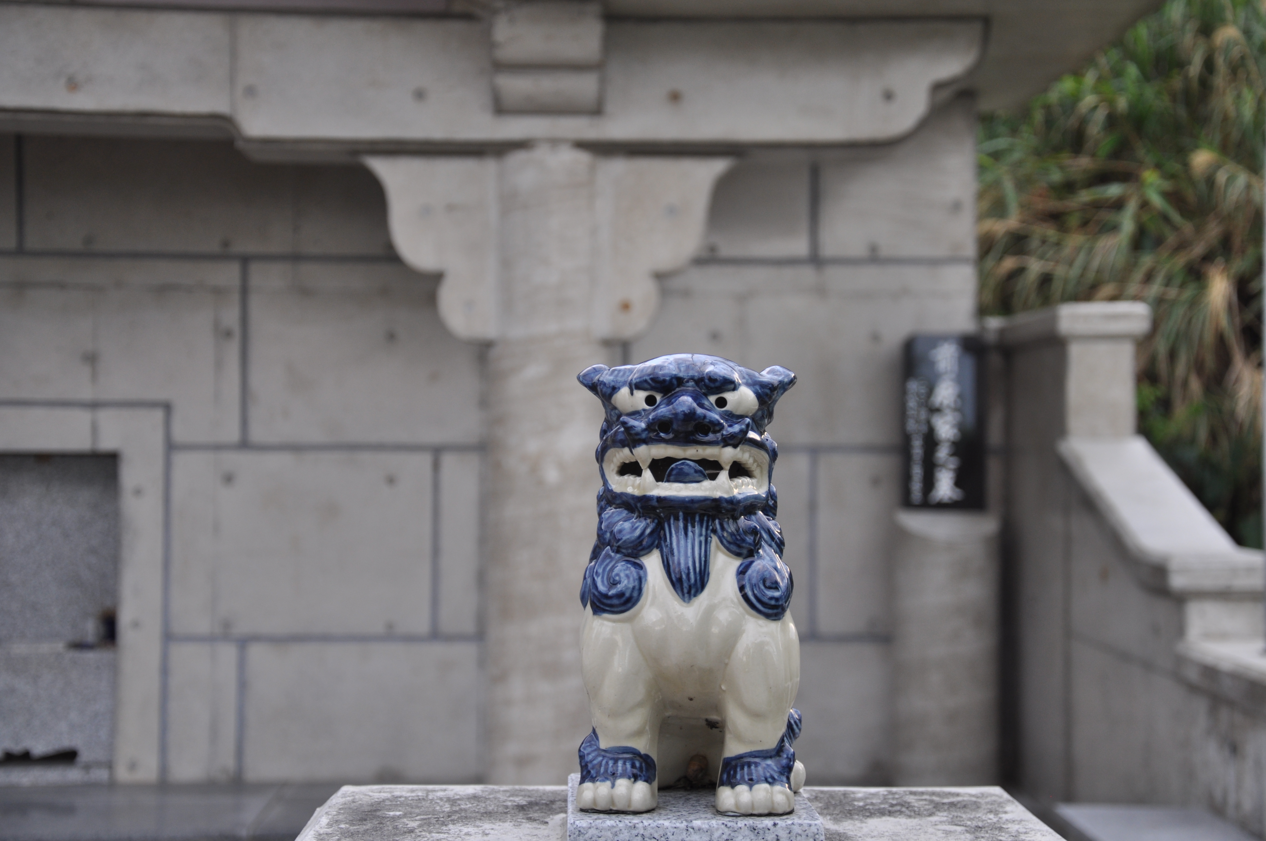 Frequently on the tombs you find Shisa. These are a pair of dogs that essentially bring good fortune. You see them everywhere in Okinawa.Read all about it at http://en.wikipedia.org/wiki/Shisa