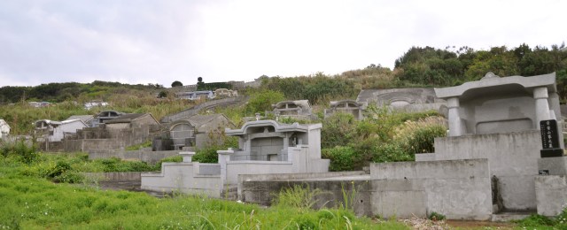 “Traditionally, periodic gatherings of the extended family occur at the family shinju (haka), or “tomb” (v. inf. for information concerning the traditional dates of these gatherings). The tombs resemble houses, complete with a courtyard (naa), family name markers, and “porch” upon which offerings are arranged. Inside the tomb is stored the cremated remains (funishin) of several generations of family members. Although responsibilities may vary on a case-by-case basis, generally it is the oldest male of a family whose financial responsibility is upkeep for existing tombs and establishment of new tombs once the old are full or should it be destroyed.”