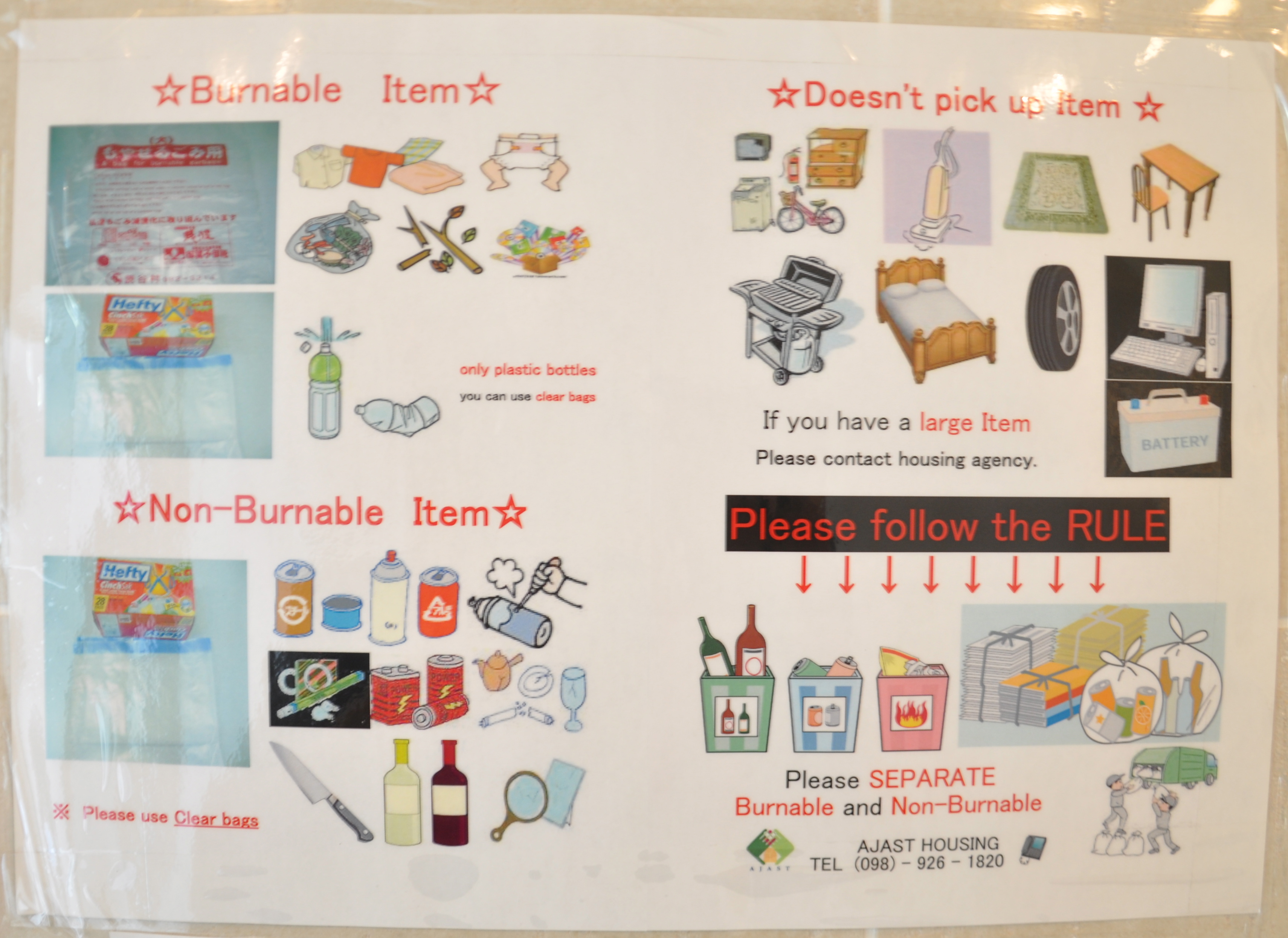 Just a quick one on Okinawan waste management. The Japanese are admirably disciplined about their trash. The trash world here is divided into two kingdoms, you know a bit like Gaul but one less. One world is burnable,