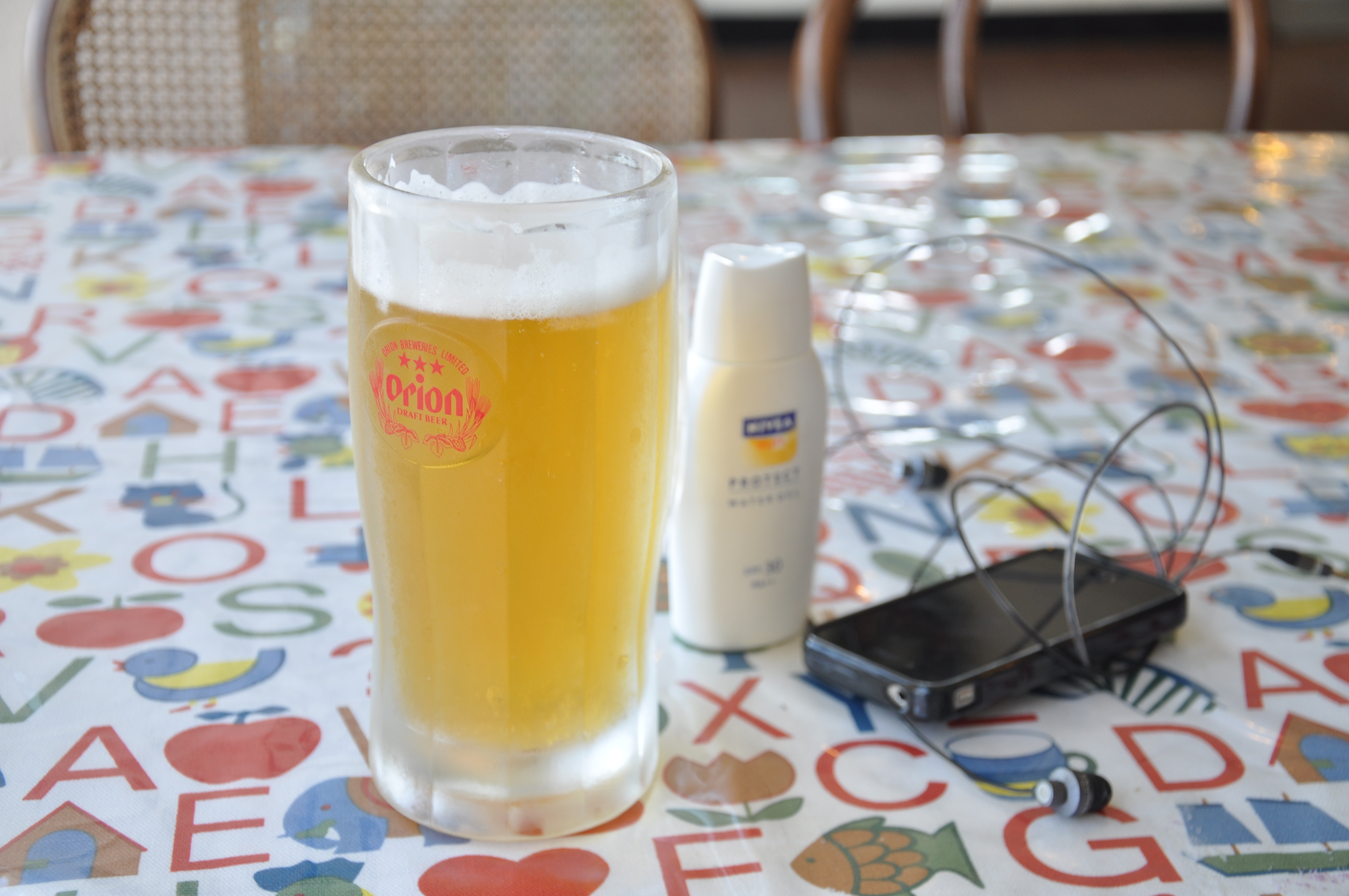 In Okinawa, I am childlike and love it. I stab at the menu : the waitress says “Hai!!” I am not what I choose.