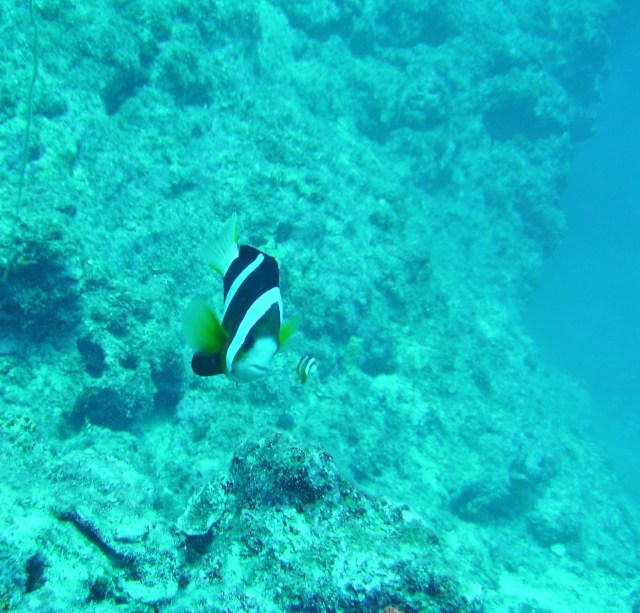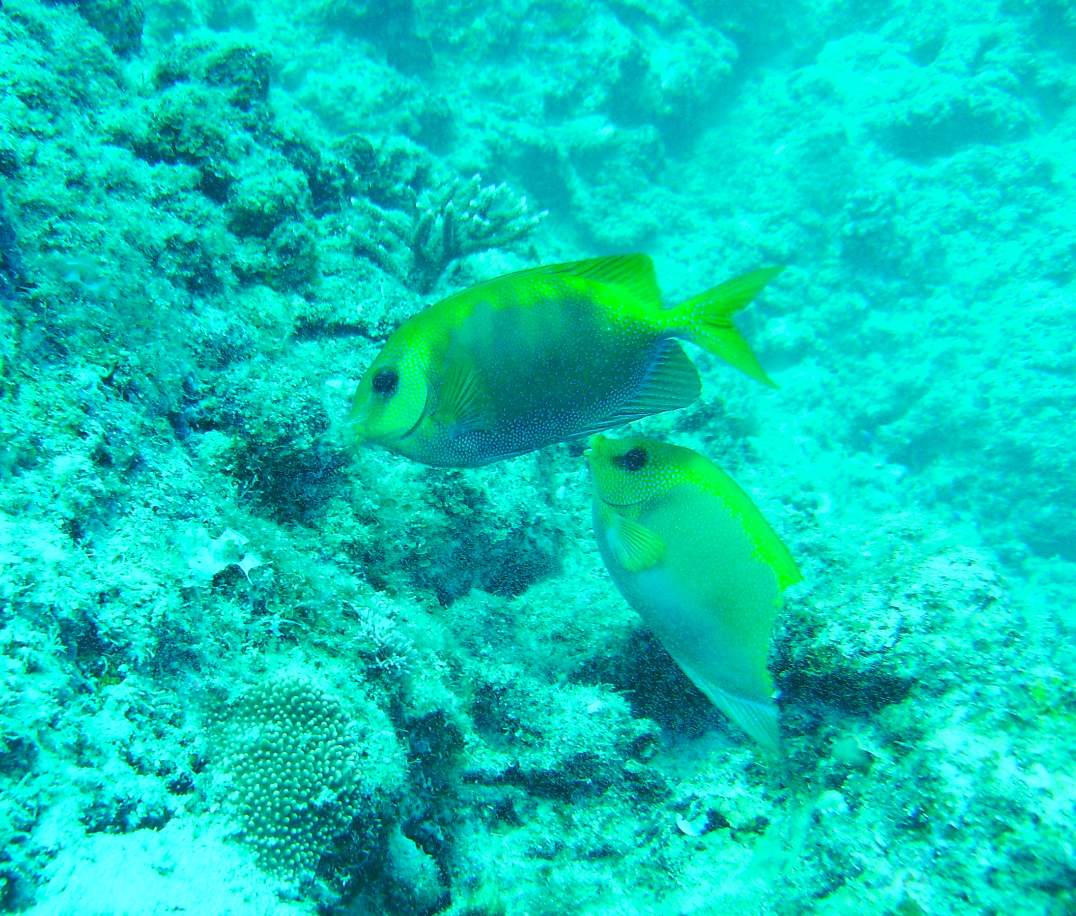 Up very early on Sunday morning and off we go to Cape Maeda – 5 mins from the apartment. It is a perfect morning, blue, sky, calm, warm, blue, sea, sun. By 7:30 I am under water and this is what you get.