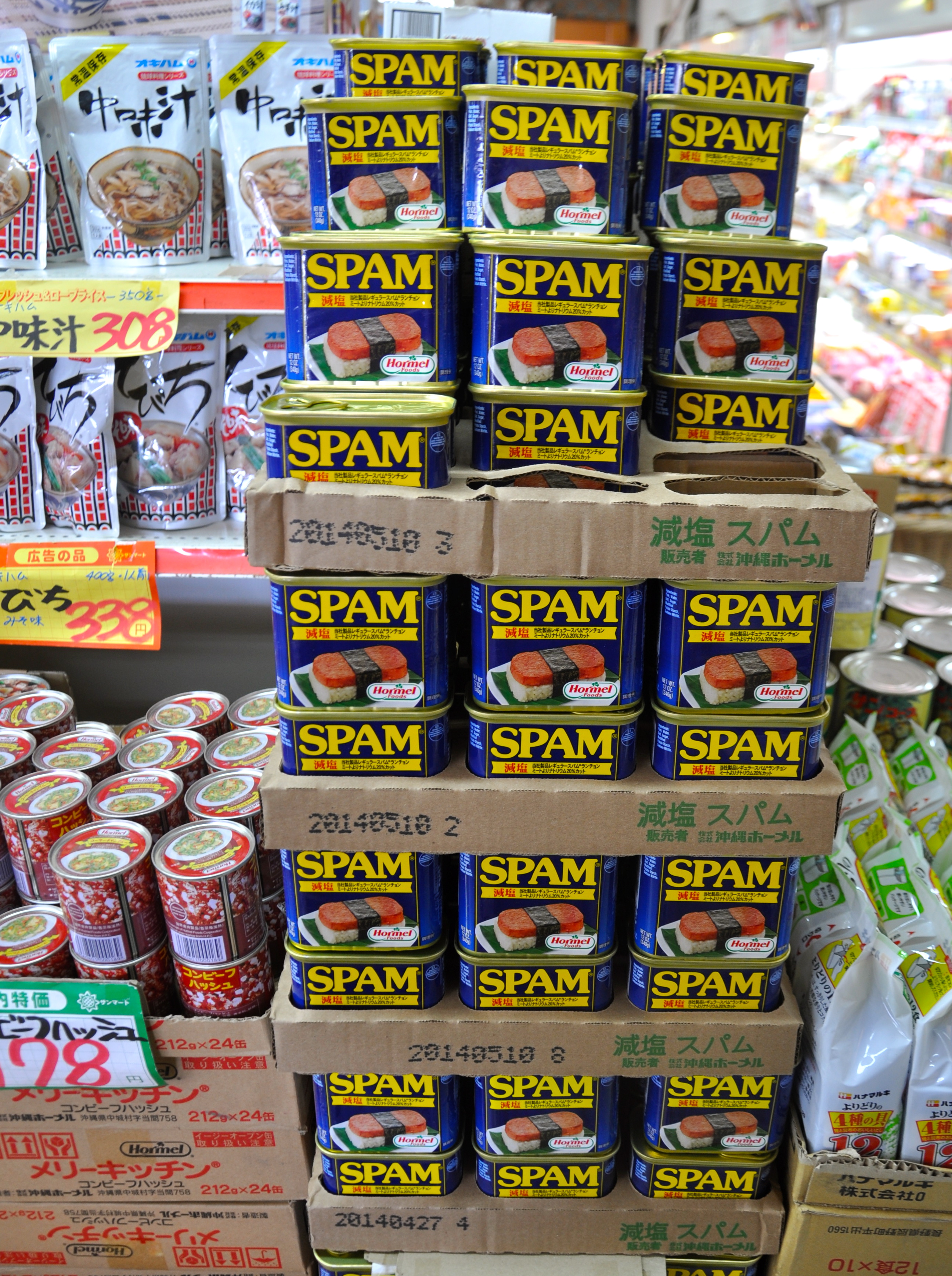 So I like Okinawa as it is a  backwards gateway to childhood culinary delight. What I mean is that folks here eat a lot of SPAM and Corned Beef without shame. In grey, green, greasy 1950’s Britain where I spent my early years both of these were staples. I loved them. I do not think there is much to beat Fried Spam and Eggs. Then there is Splosh which is a carefully crafted mix of Corned Beef and mashed potatoes whose name derives from Onomatapoeia.