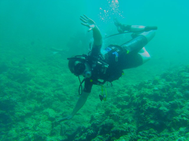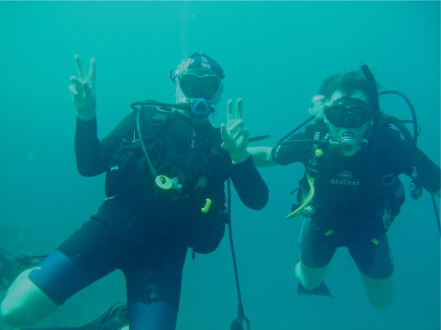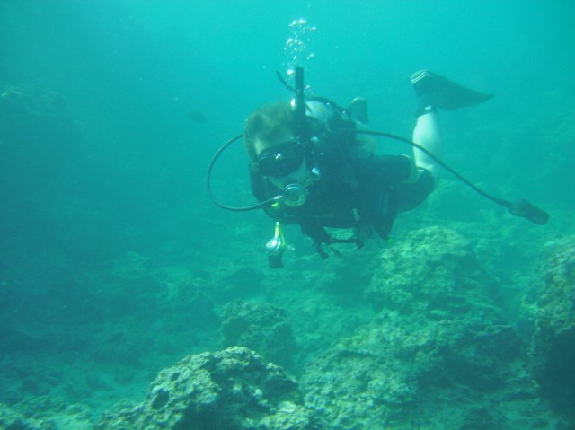 So son Ben comes to stay. Straight off the plane into the sea and he completes his open water diving training in record time. He is like a, er, fish to batter, um snail to garlic, like lobster to creel, you know,  a Zulu to Ukweshwama, a Scotsman to the MacBraynes’ bus.