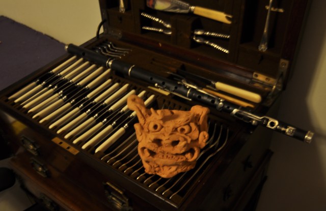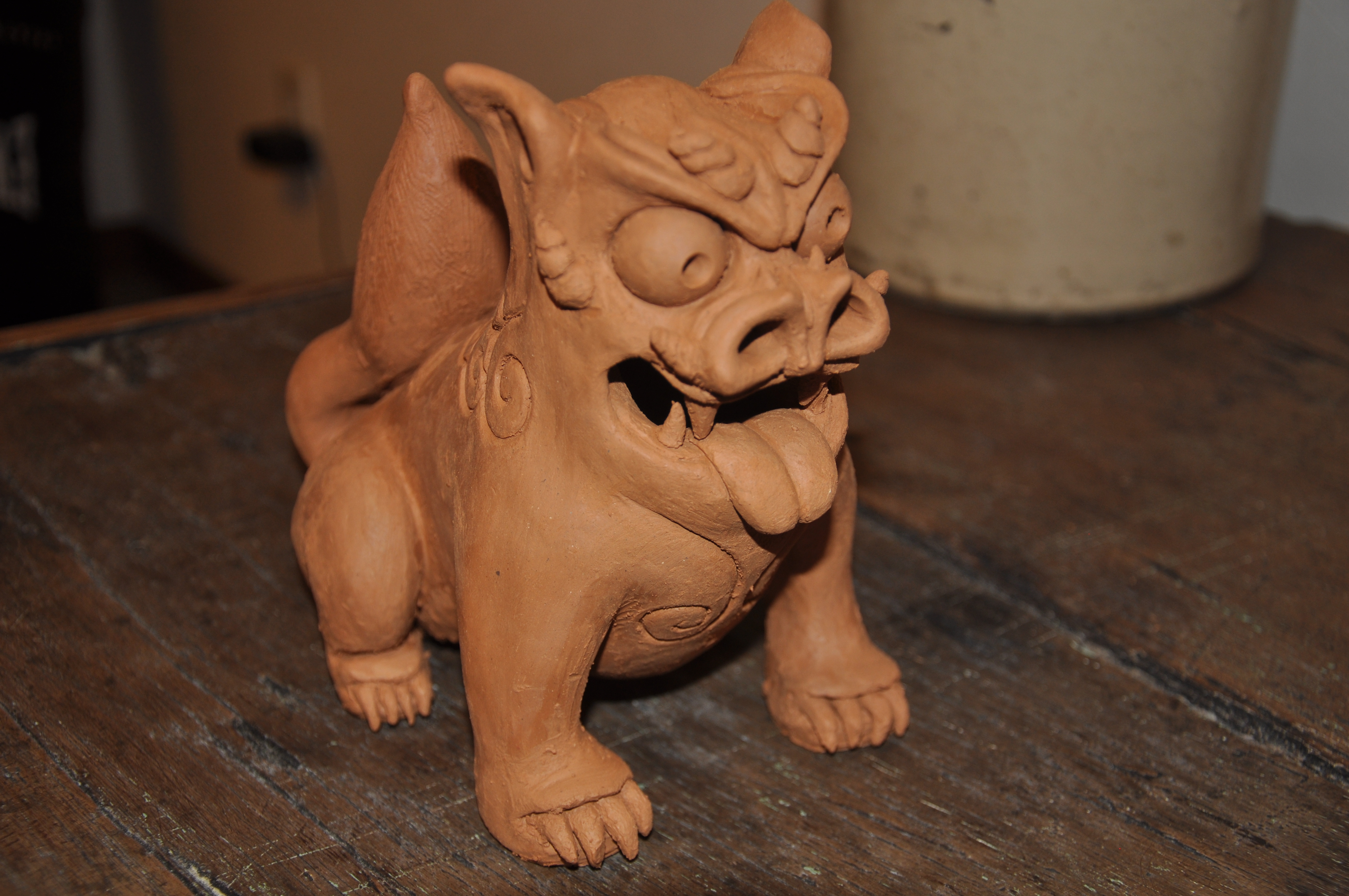 Ben spent a good chunk of his time on Okinawa modeling a Shisa at Yamada san’s workshop. Ben is a talented and  extraordinarily meticulous clay man. This is his Shisa which is now waiting to be fired.