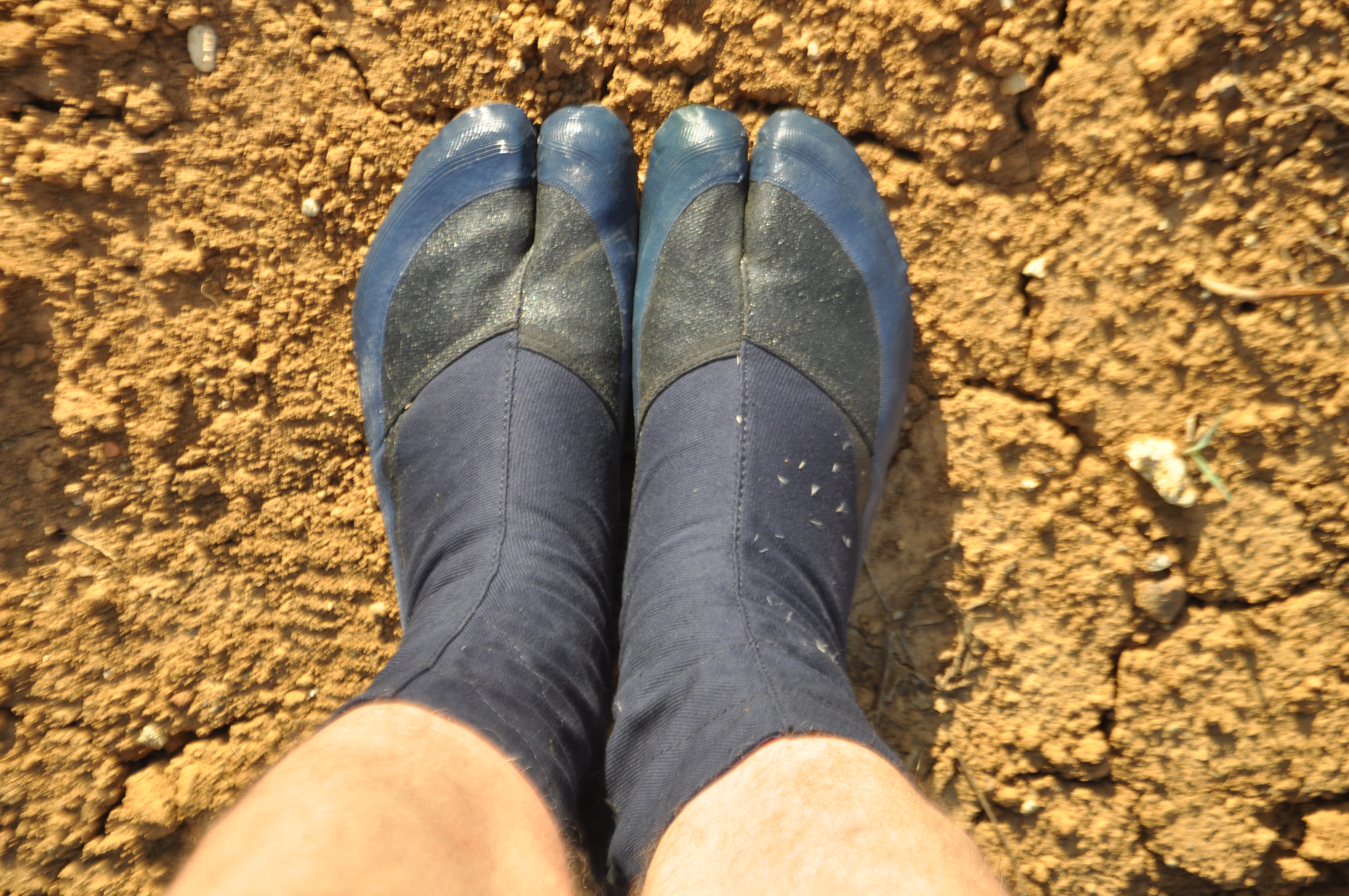 However there has been progress. After weeks of tramping orange, clayey earth into my car and apartment, I bought myself some Japanese gardening shoes. They are wonderful. They have semi fetishist clasps up the side, a separation between the big toes and the others, giving me cloven feet.