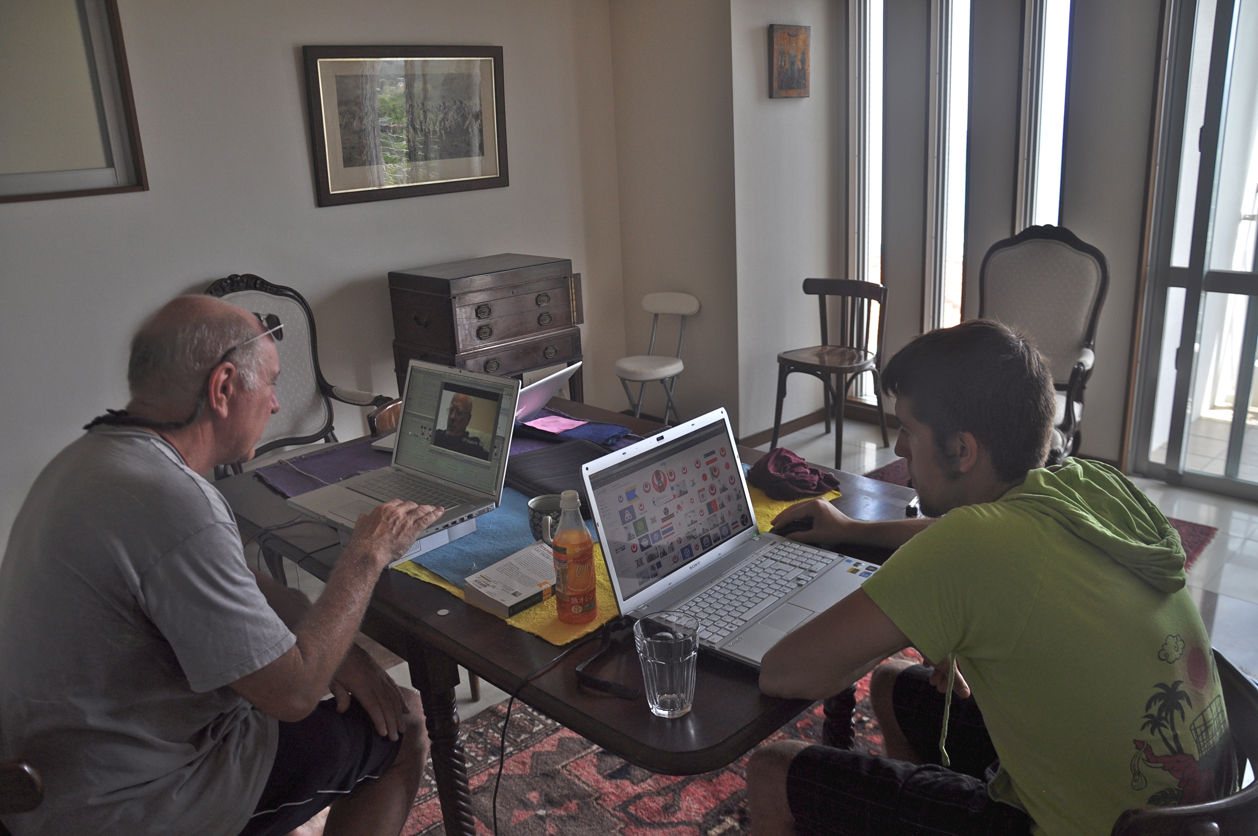 Lately I made a movie of the same genre with another young French film student, Gabriel Arin Pillot. This time in Okinawa. It was an amazing experience. Everything was filmed with the video function on a Canon photo camera using one lapel mike attached by student sound person Emile Trimoreau. The movie was constructed in my front room on Mac laptops using Final Cut. Filming, editing,subtitling, rendering took less than 4 days.