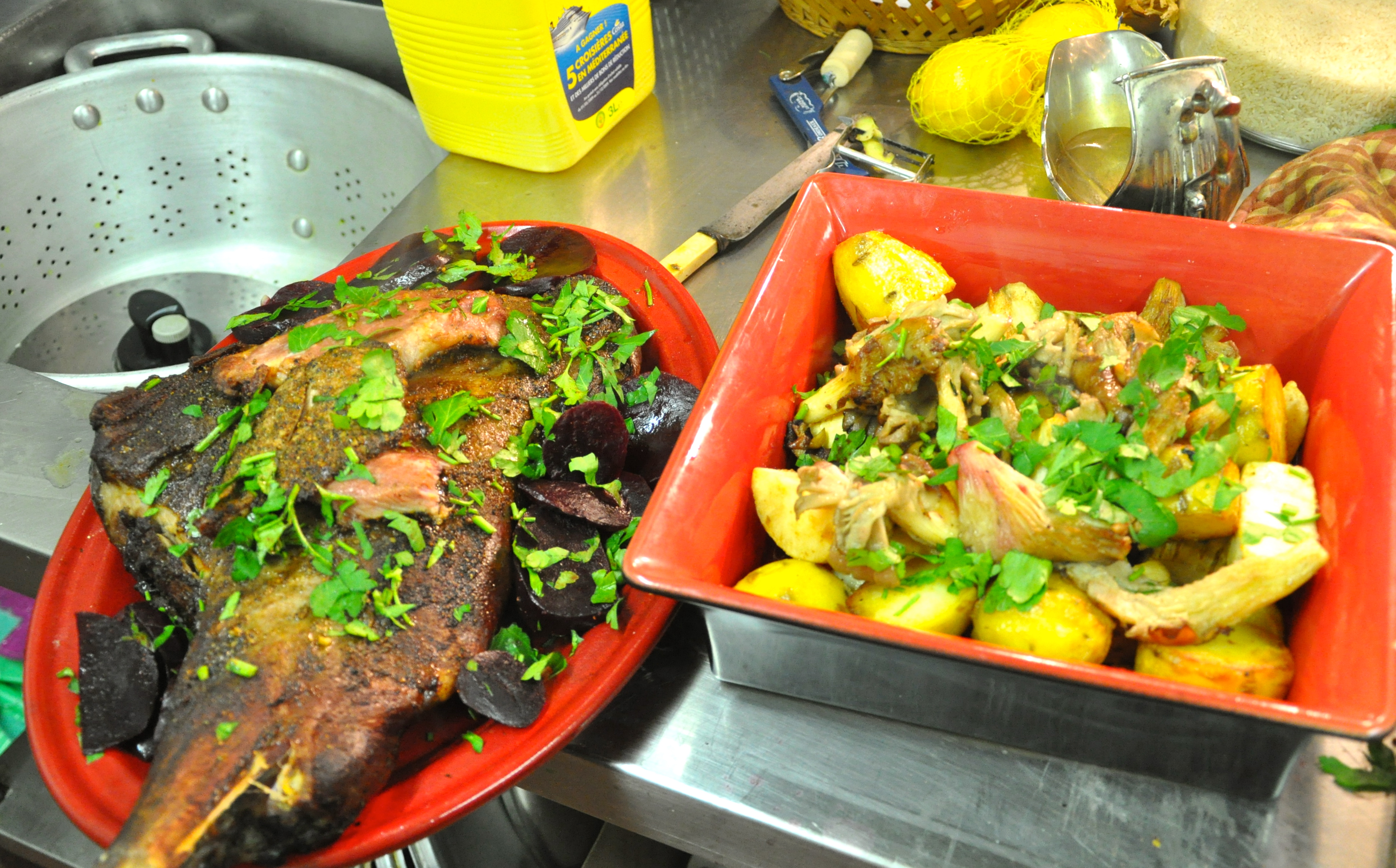 There are few possessions that I own or have owned about which I give a toss.There is however a select band, a coterie, of stuff for which I feel real affection. One of those rare articles has just passed. My lovely bright red serving dish. I bought her on the market in Divonne les Bains in, I think, 1997. Since then she has been my companion in the kitchen, my girl in gastronomy, my friend in feeding, my oracle of the oven. She grew old and one meal too far, baked pig’s face, signaled her demise. Quelle tristesse. I will never find another.