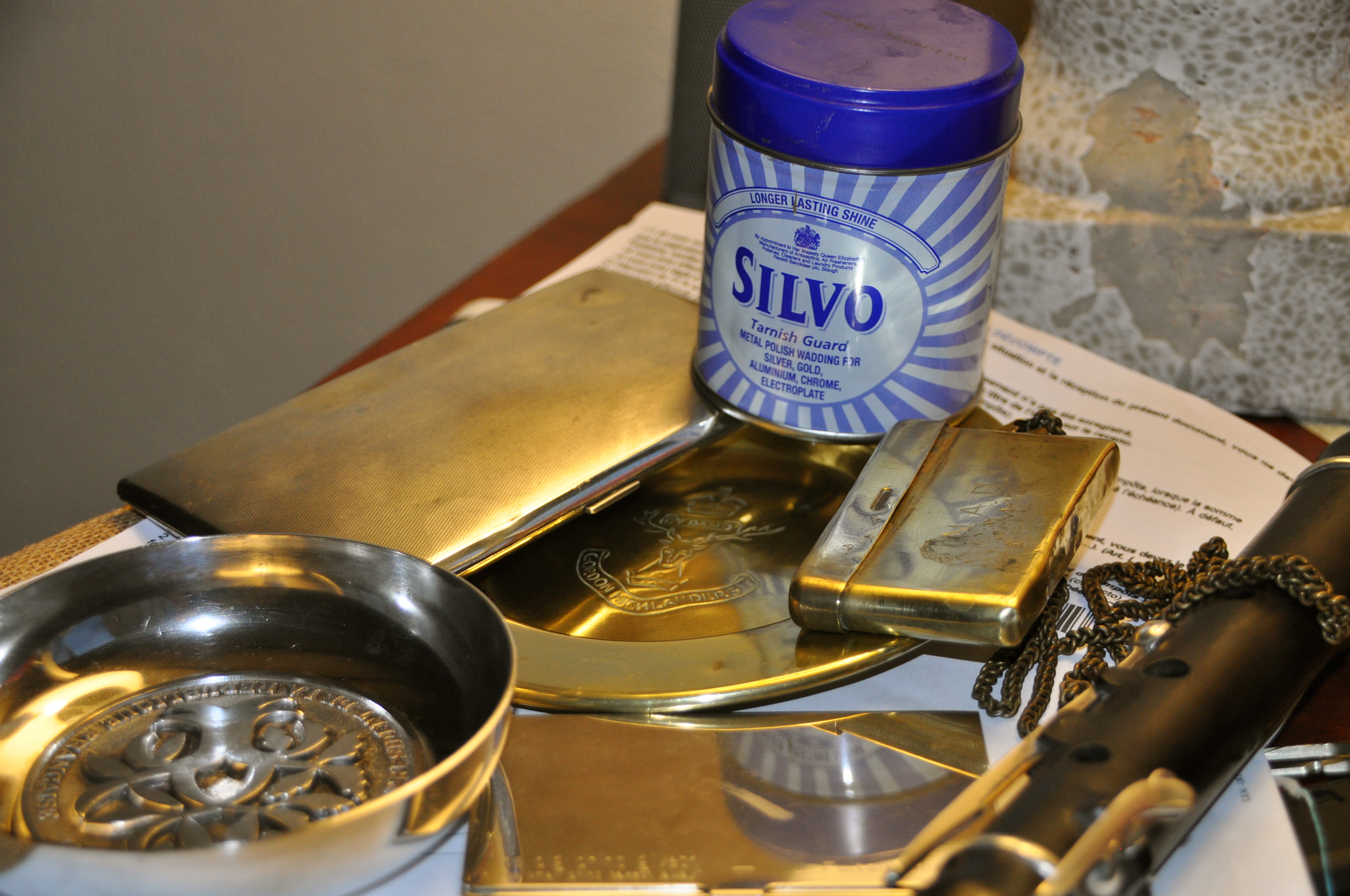 This is a good thing as amongst my meagre possessions there is an inordinate amount of silverware and some brass. I also have one good pair of black leather shoes.