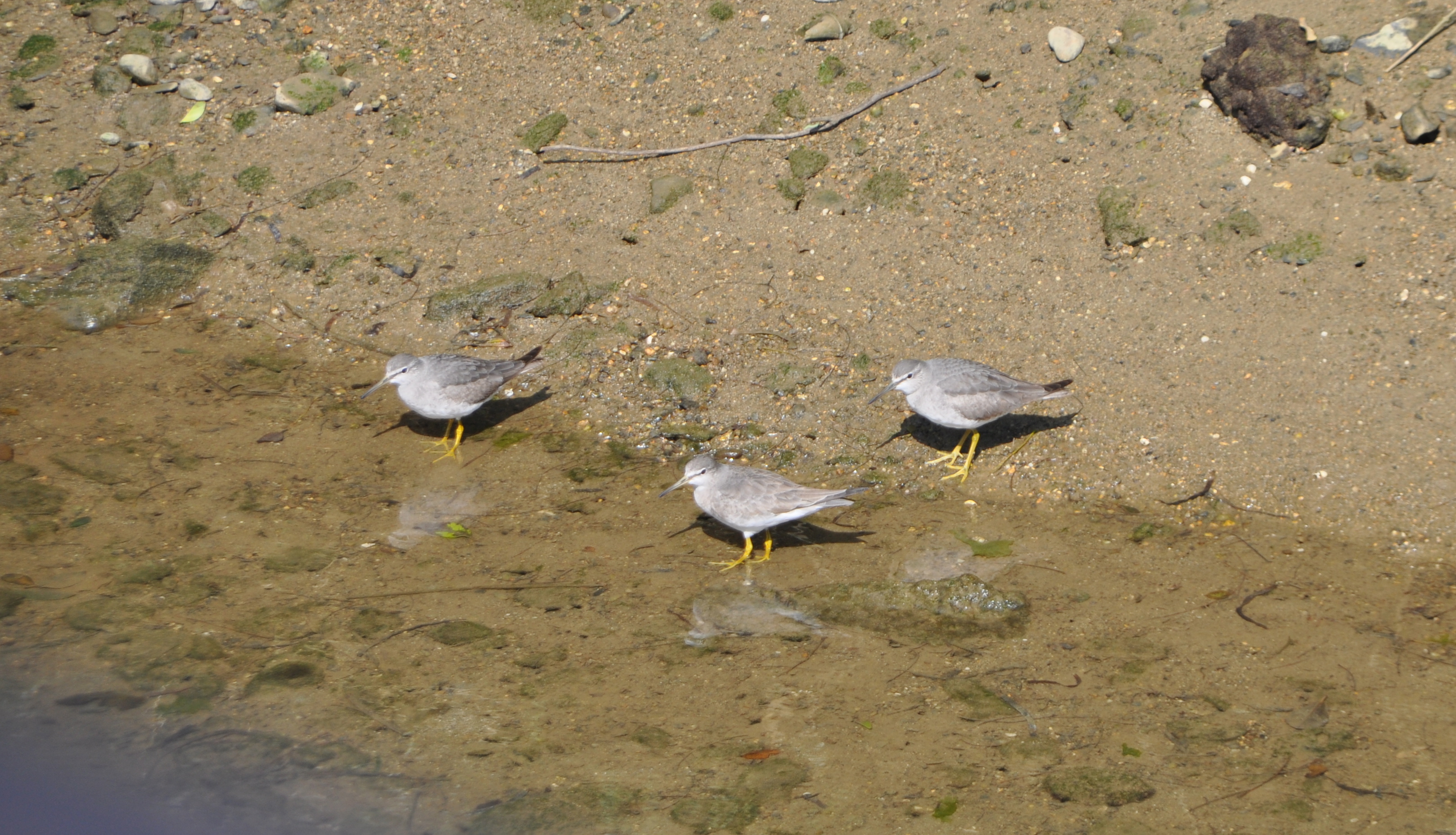 So we go for a walk. The weather is bright and sunny and off we go to explore. The little river is full of fish, which we watch, and on the shore we see Grey Tailed Tattlers. We see kingfishers diving for little, baby fish so they can eat them.