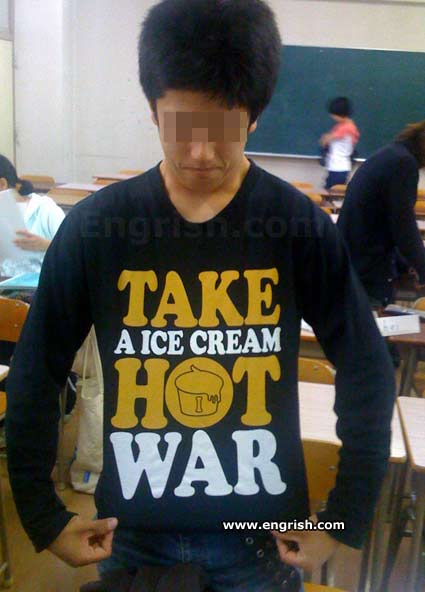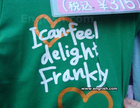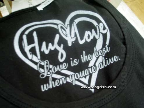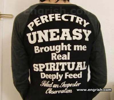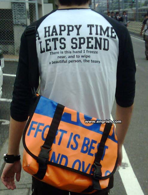 I have since noticed that the vast majority of Japanese Tshirts follow the same pattern. The writing is English but it is charmingly just slightly out of tune.