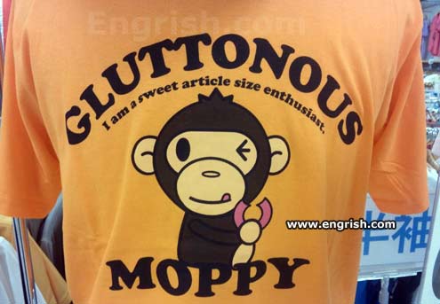 I have a suspicion there is a secret clan of foreigners working undercover in Japanese companies, competing with each other on who manages to get the craziest prints, product names and slogans through to the stores.