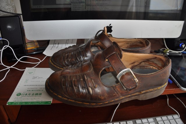 I have had a pair of Dr Martens sandals for about 7 years. I bought them second-hand from Ebay when they were already well used. I think I paid $12. I have a soft spot for Dr Martens shoes as they are made in Northampton in England. I used to live nearby and a shady friend would supply me with boots that he had liberated from the factory.