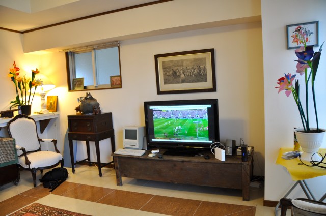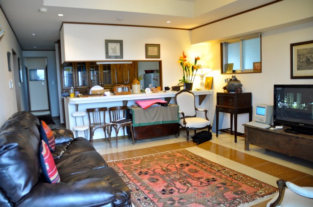 After a few nights watching movies sitting on a hard-sprung-straight-backed chair, the idea comes into my head that a sofa would be nice. I go to Okinawa yard sales