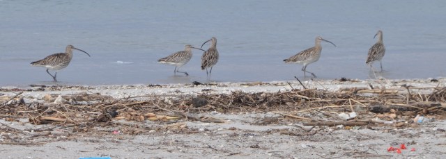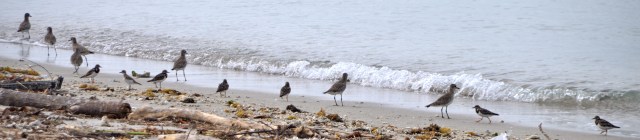 The big ones are Greater Sand Plovers and the little ones are Ruddy Turnstones. Happy happy joy joy. Click on the photo for close up.