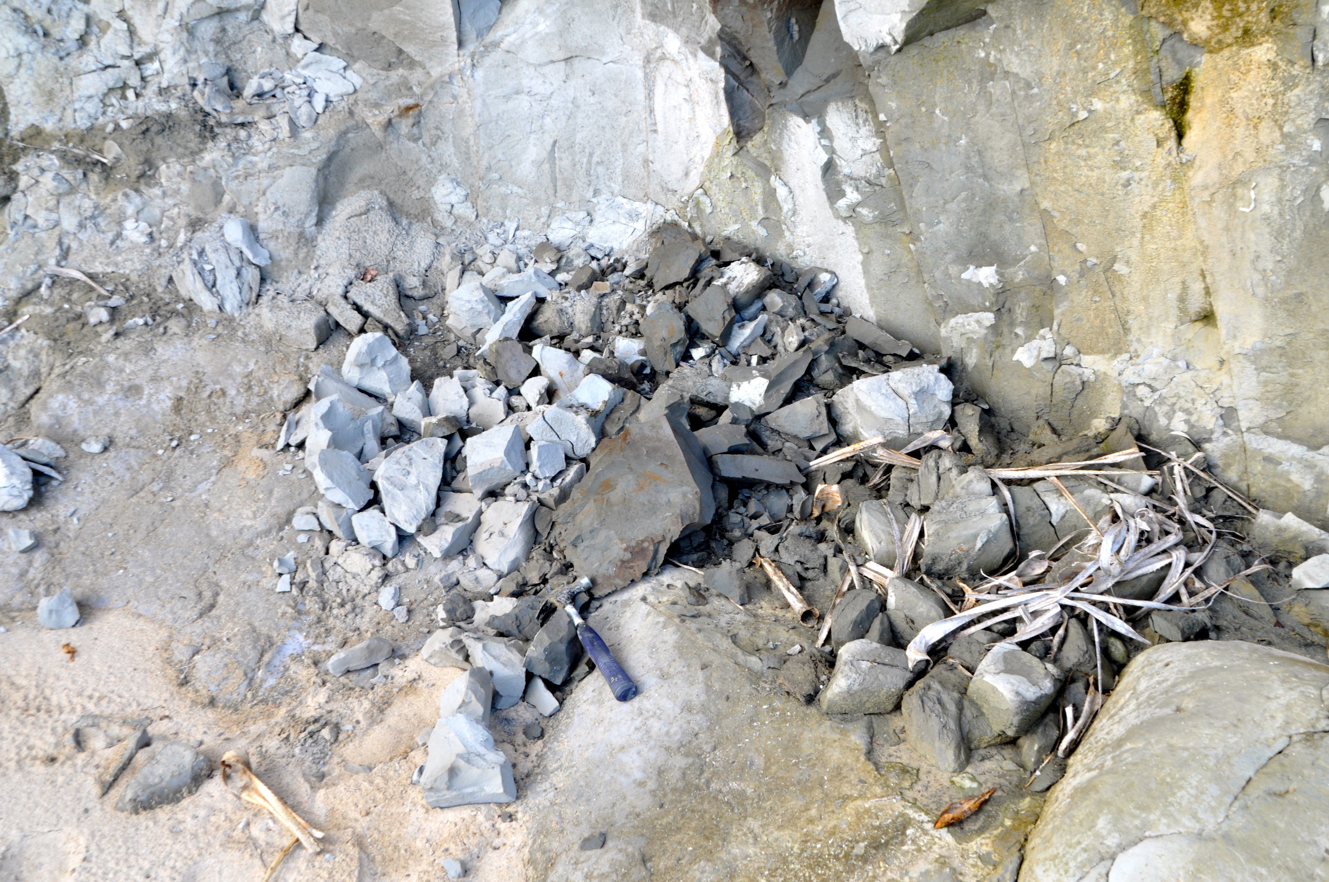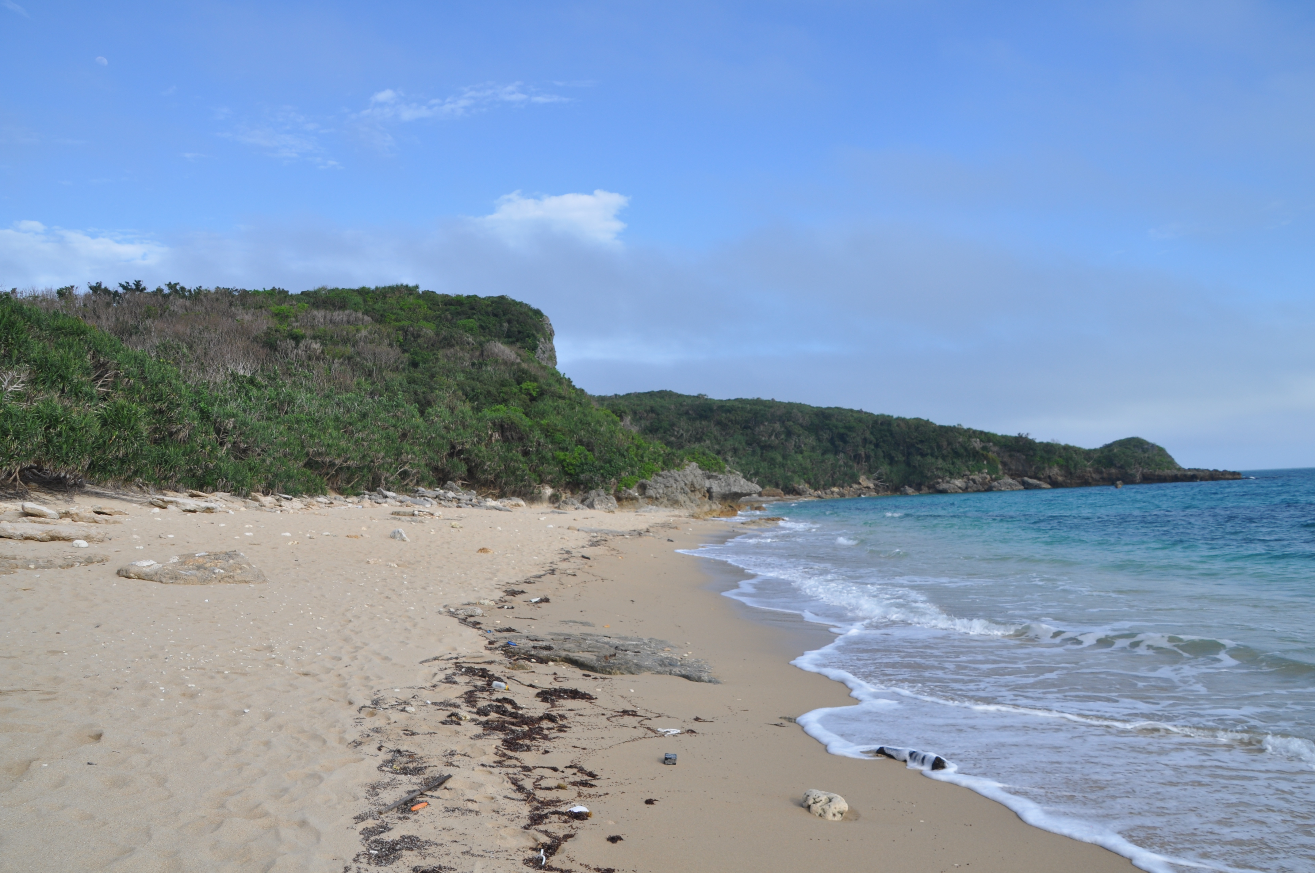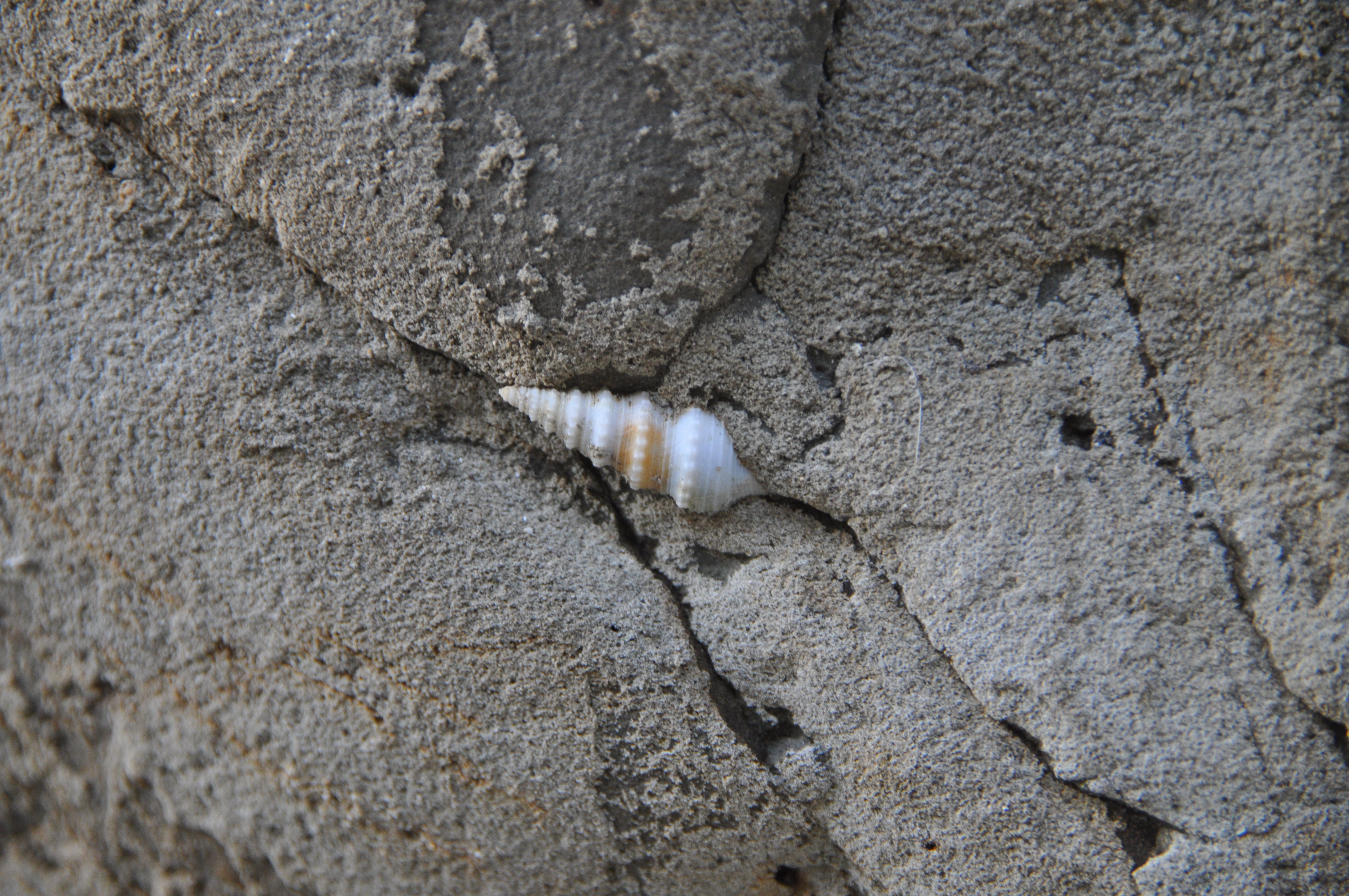 A learned colleague has a enviable collection of fossilized shells in his office. He tells me where to go to find them. It sounds very easy. You go to a certain beach on a remote island on the East coast of Okinawa and there in grey muddy cliffs you find the fossils.