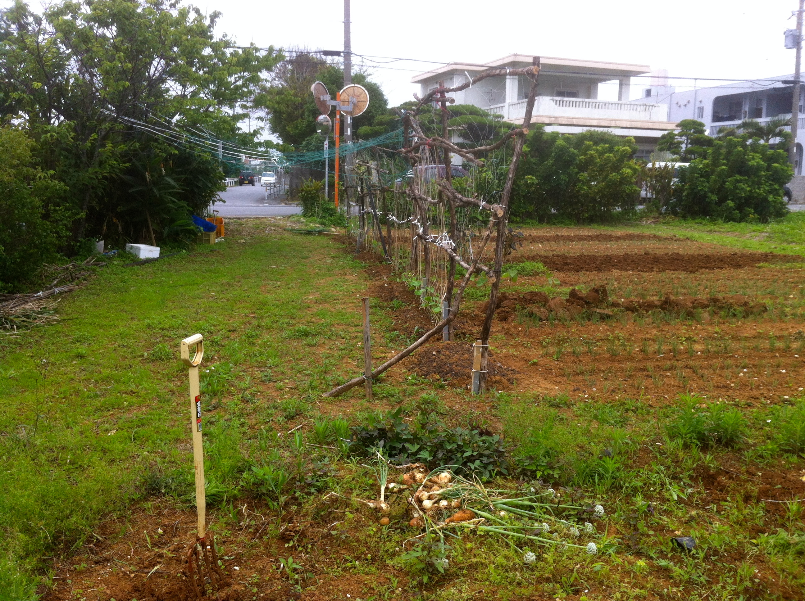 We have a vegetable grower’s conversation, he in Japanese, me in English. He is clearly the real thing, understanding the cycles of Okinawan horticulture. I come away understanding that now is the time to plant goya and tomatoes.