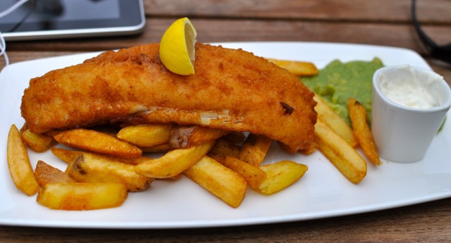 Many athlete looking people in fancy track suits so I eat some Fish and Chips.