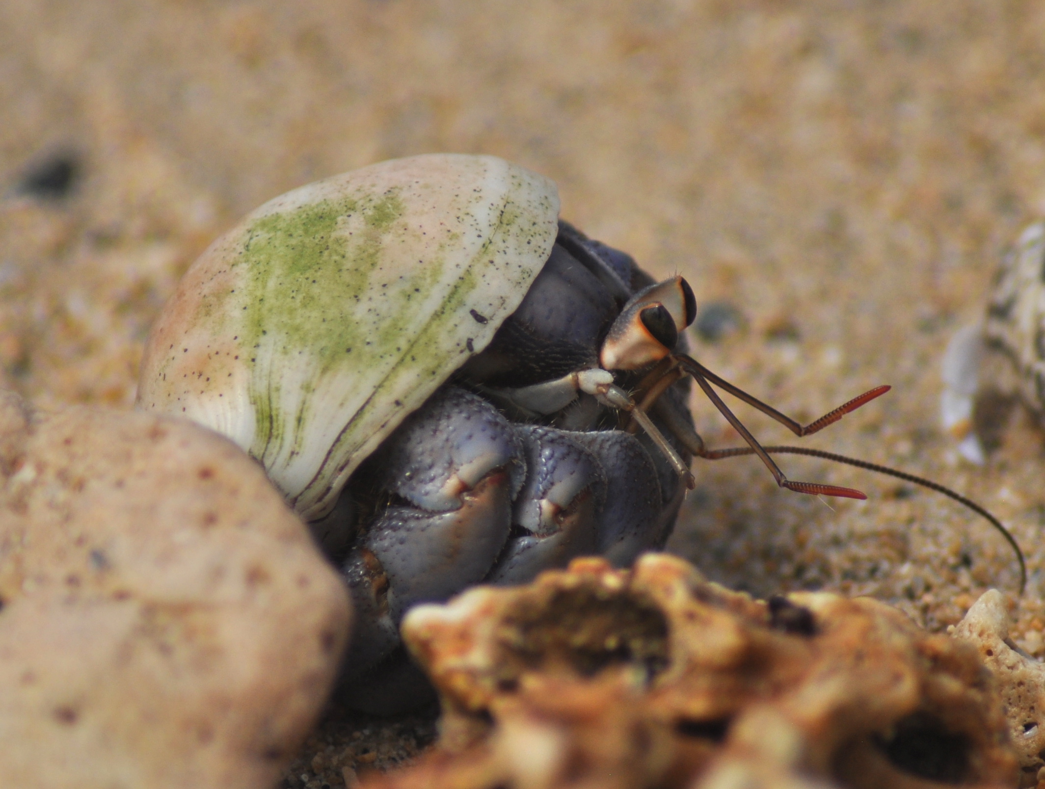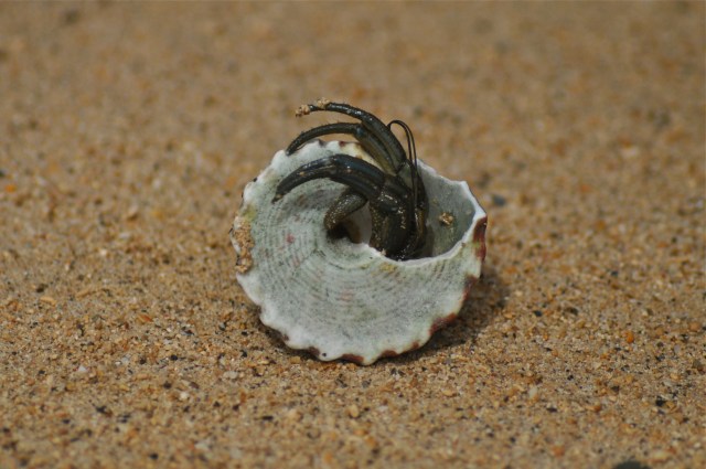 Stumbling along a beach in Okinawa is different from the same activity on those beaches I have stumbled along hitherto. Okinawan beaches are bustling with hermit crabs. There are thousands of them. Where do they find their shells? There are no empty ones. Every shell is already occupied. It is a seller’s market when it comes to housing for crabs. I fear social disorder amongst homeless crabs.