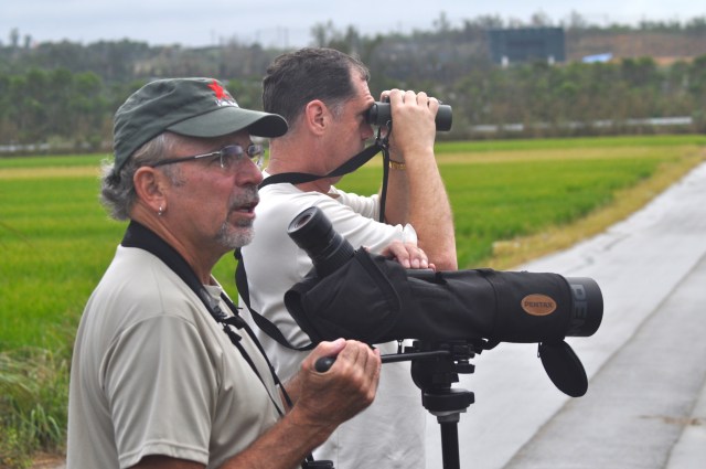 “Dan Smith flew in from Yokosuka last night so we decided on a birding foray to the Kin Town paddies this morning, We met up Neil Calder, a relatively new birder living on island, who hails from Scotland. In his words, “What a fantastic morning at Kin!” We ticked 18 species of waders to include: