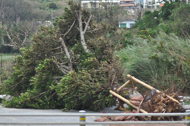 Good because it came during the day and so you can now er see its influence on normality and good because it came right over the island and was thus a typhoon in three acts.