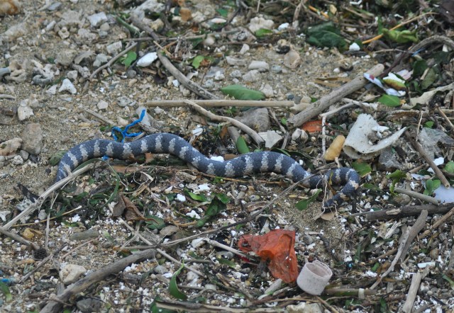 Sea Snake blown up on the beach. I saved it but it did not say thank you. What a snake!