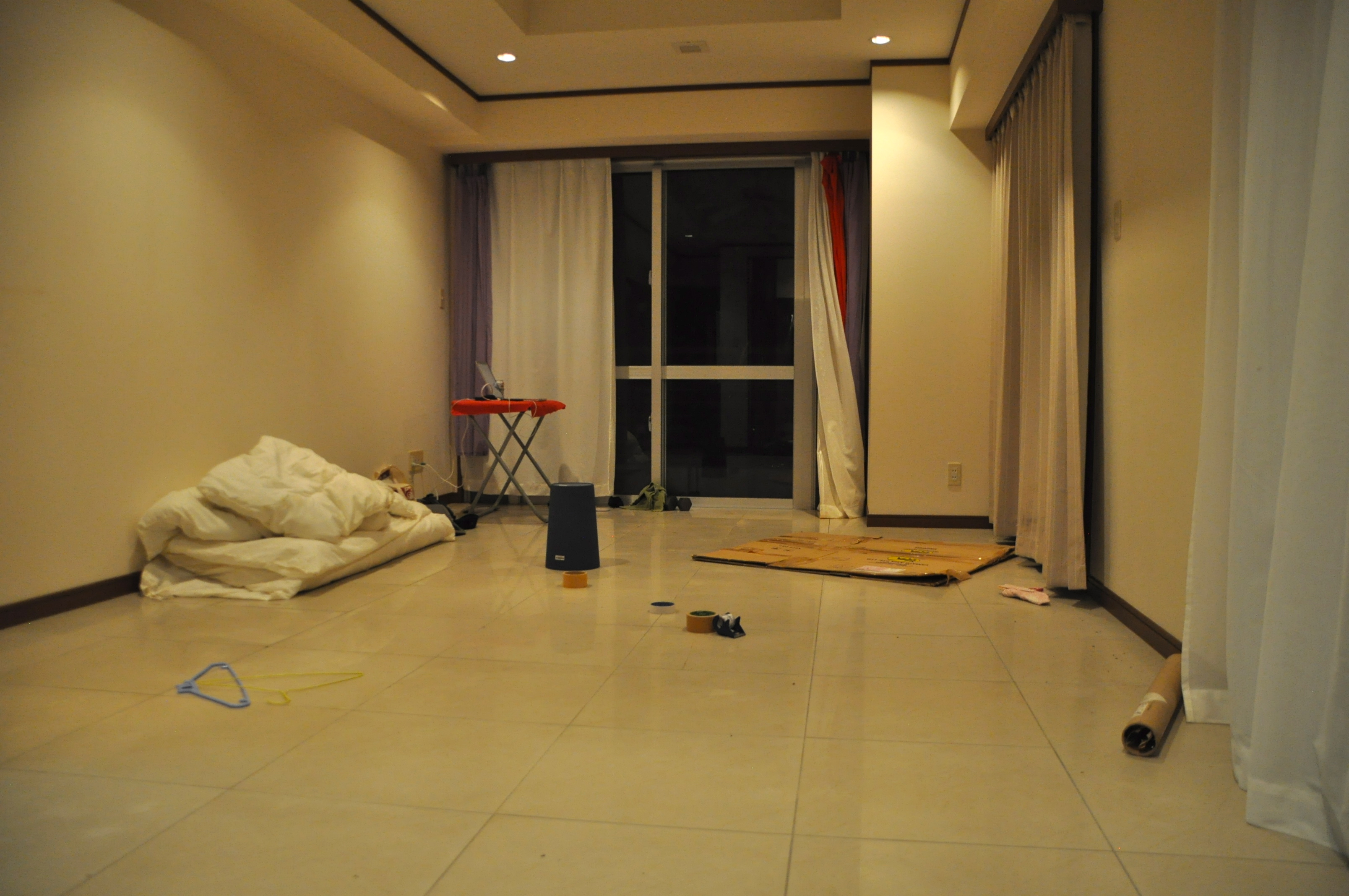 I move in for good next Friday but in between I am in Kyoto and the inspection has to be done and the air conditioners er conditioned and the like and so I had to move the furniture today. Do you see what I mean? I am writing this on a laptop sitting on an upended garbage bin in a totally empty flat.