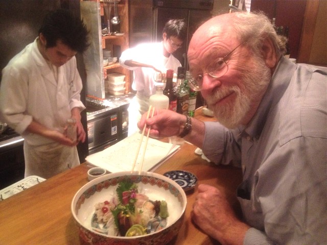 We exchanged Sheffield shibboleths such as: “D’areet chuck?” – “Are you feeling well my dear?” and “Tint tin tin.” – “It is not in the tin.”  Very good time was had by all. The man of the left was Rich Roberts:  http://en.wikipedia.org/wiki/Richard_J._Roberts