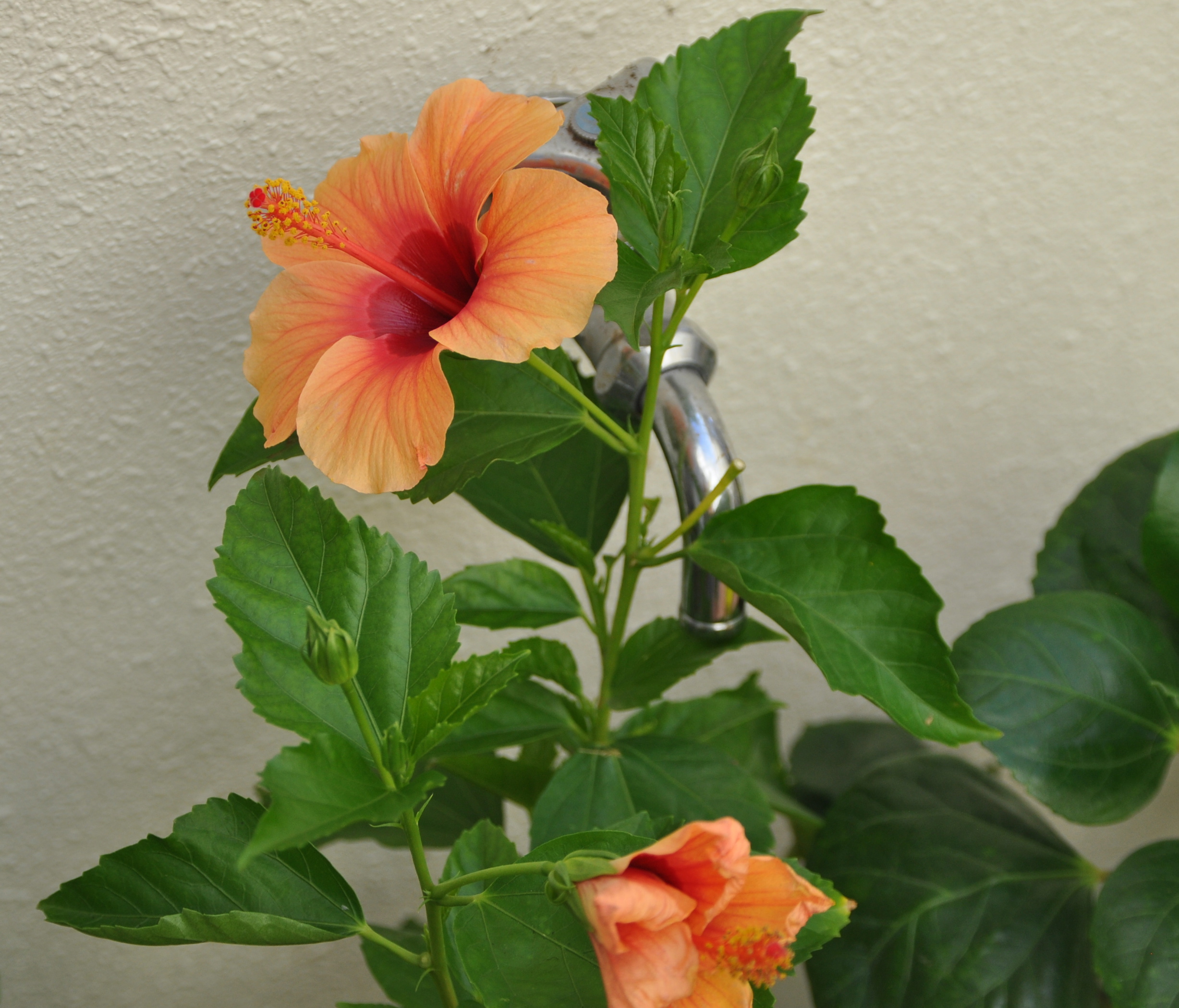 I then moved in my fallen women. I love Hibisci. They are very space age. I intend to fill the courtyard with many, many Hibisci plants. I think they will do well as they are protected from the wind, which is the main plant killer in Okinawa.