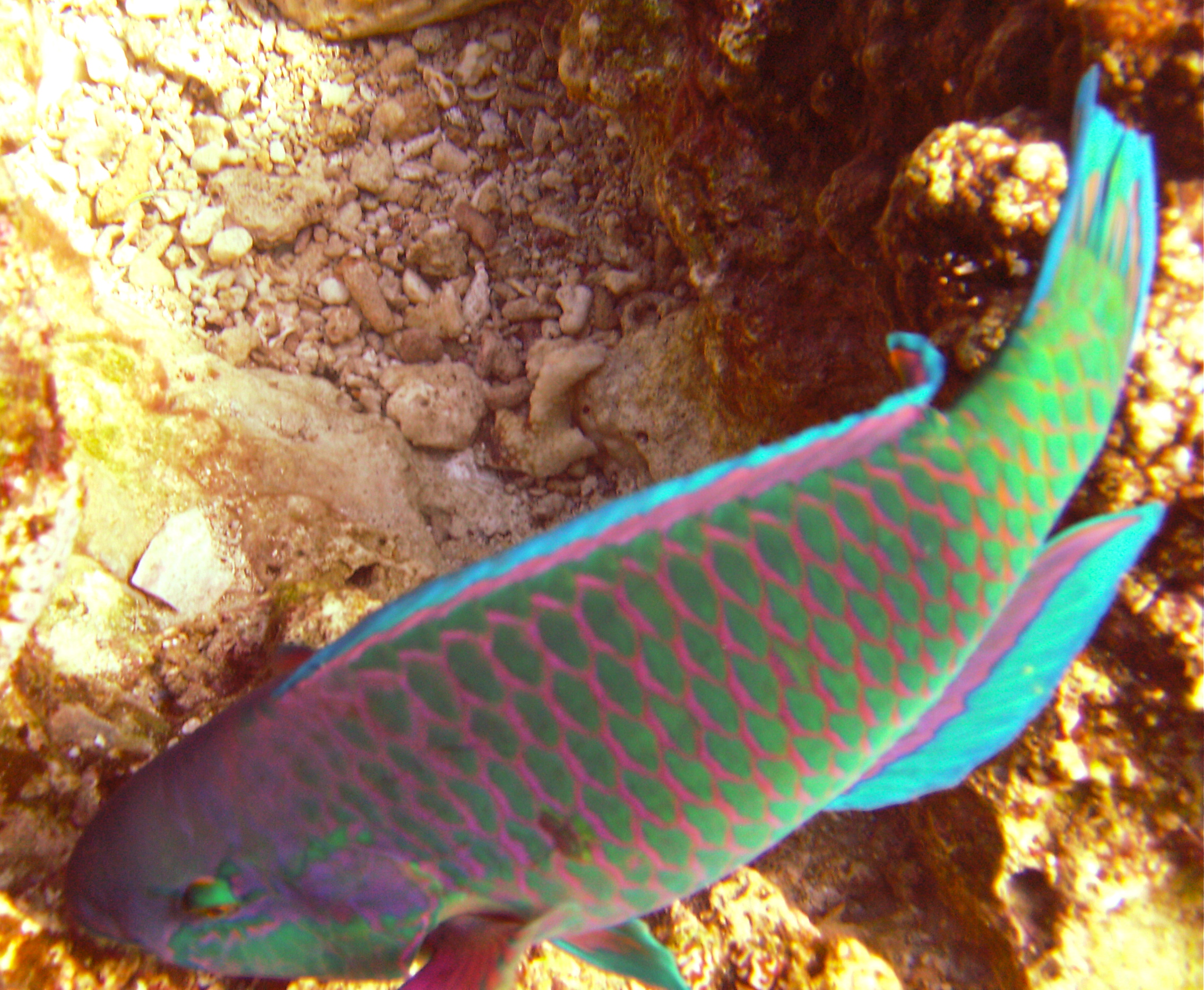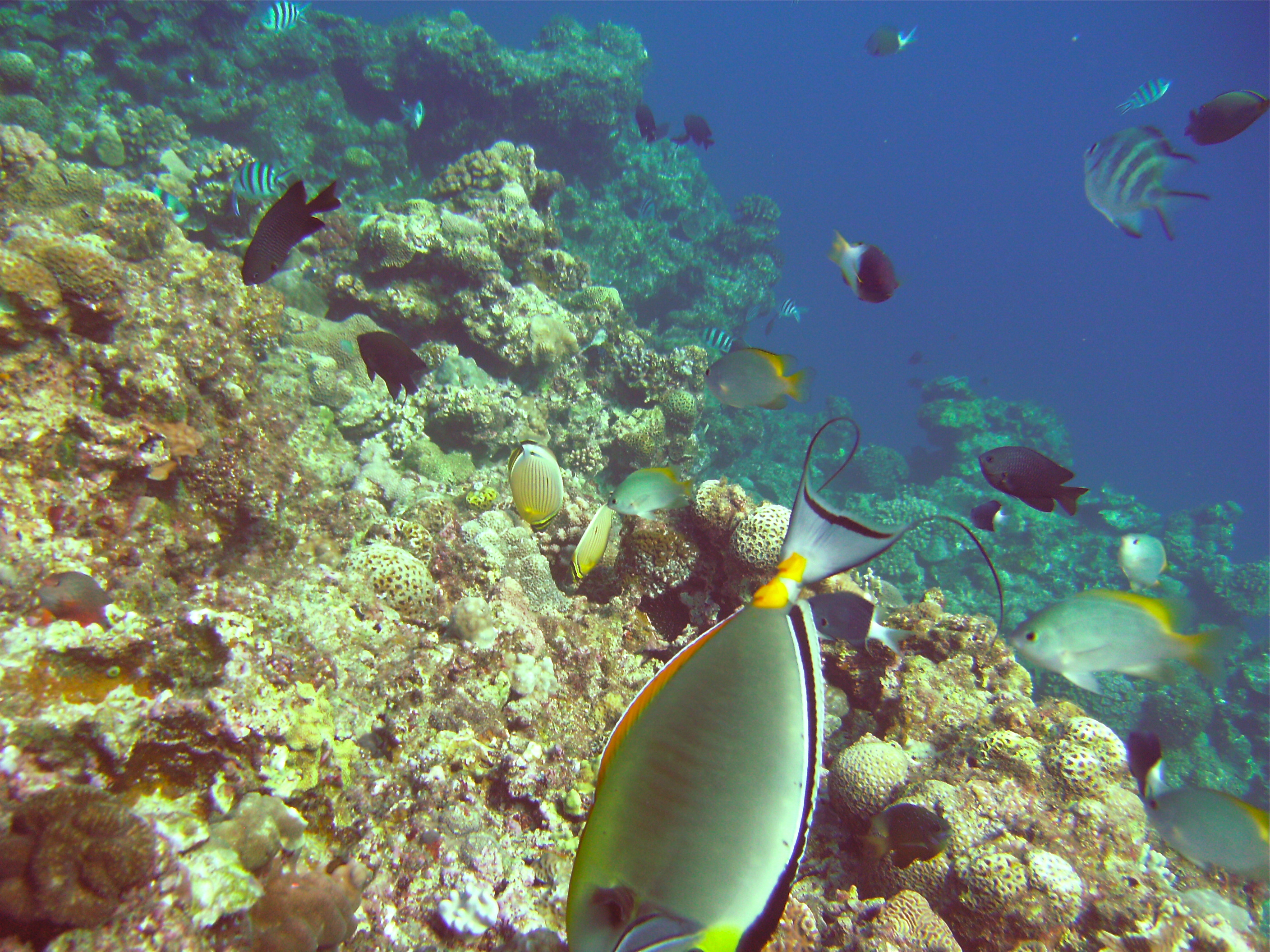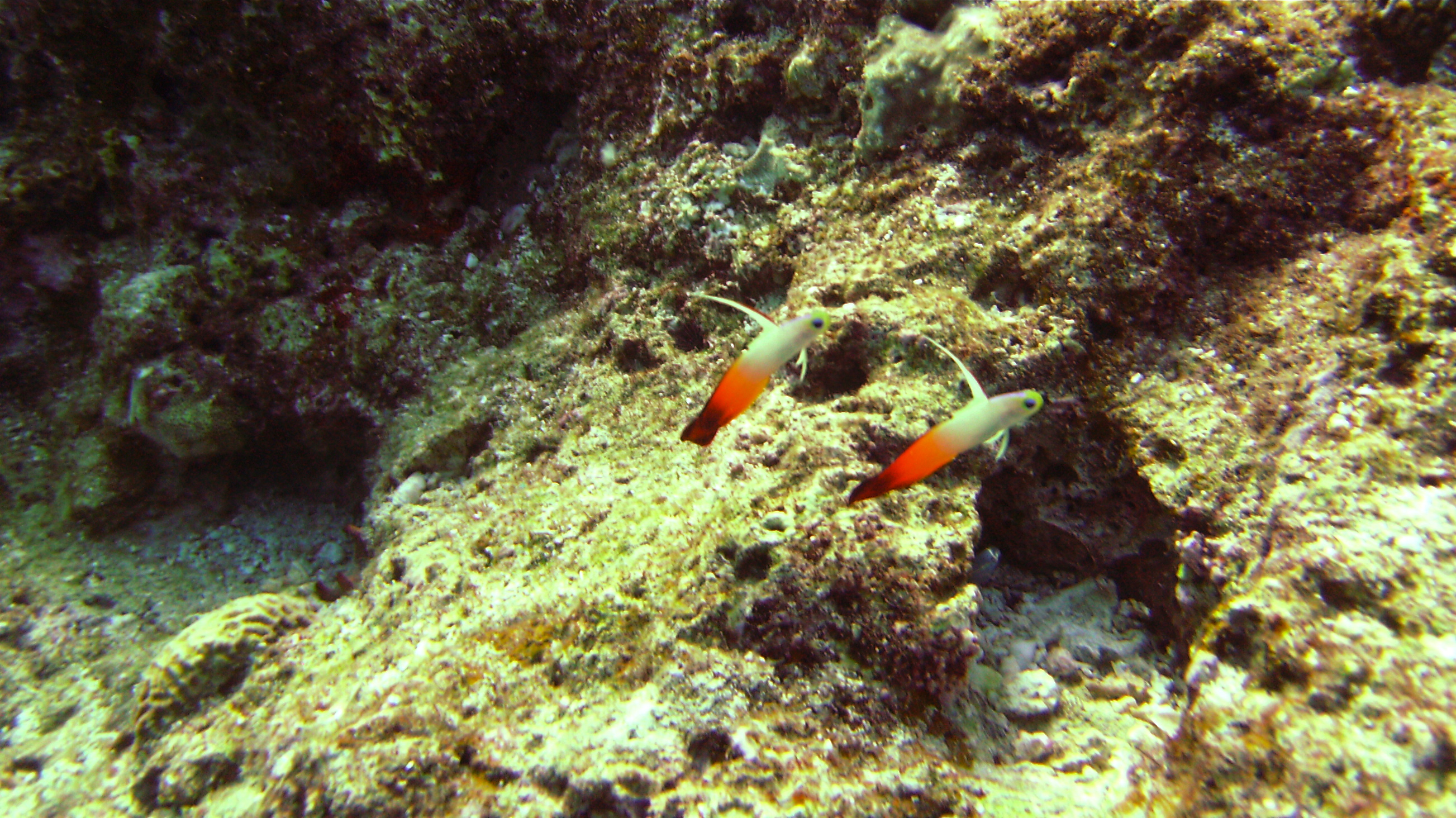 I then motor the 3 kms to Cape Maeda, one of the great dive er spots, places, entries, zones, you know what I mean, in Okinawa.