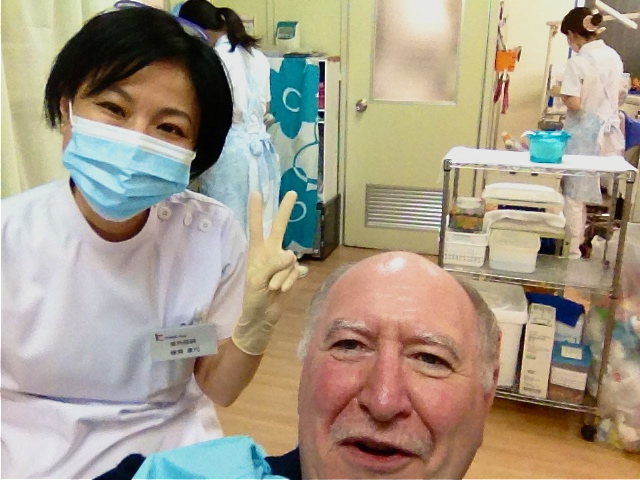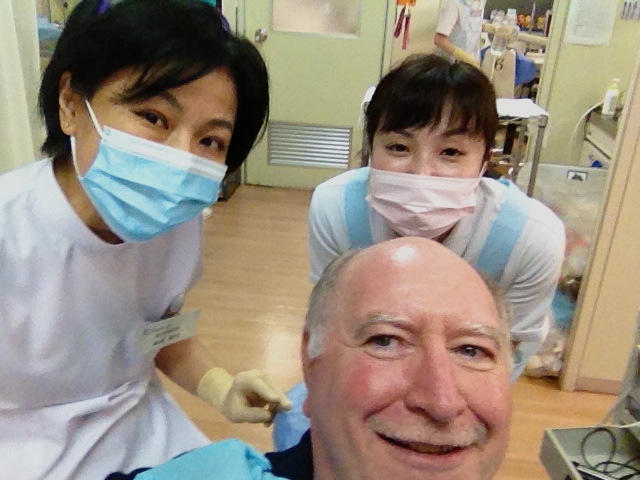 The lady on the left is the dentist sensei. She gave me the longest injection I have ever had at a dentist. I believe that she was so worried about inducing pain that she waited for the novocaine to act each time before sliding the needle in another millimetre. It was fun and they loved posing for photos. It should be noted that this took place at 8:30 pm. People really work here.