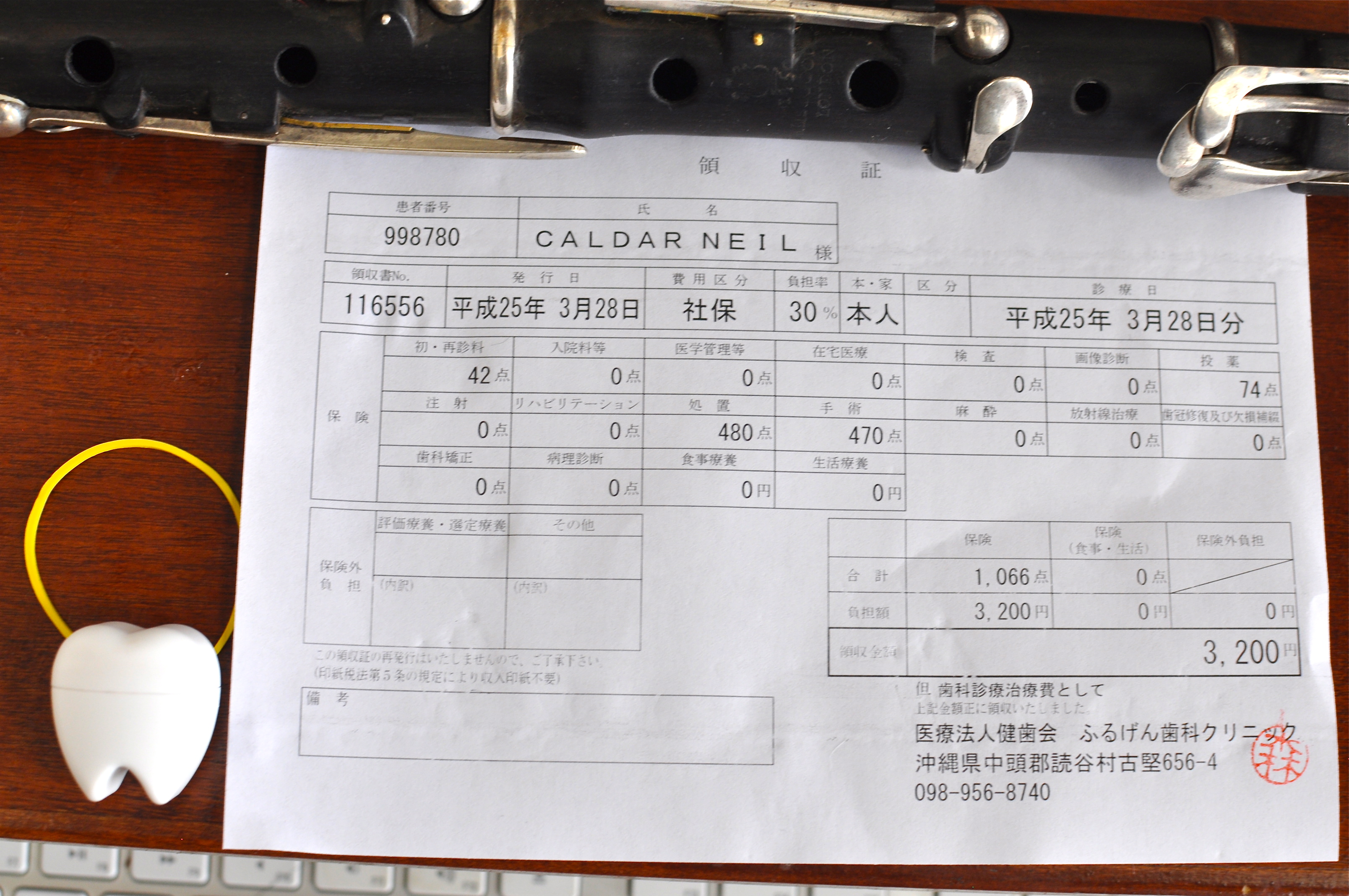 To anesthetize the tooth Mori-sensei gives me longest series of injections. It takes about 10 minutes and I feel zero pain. There is then a comedy break whereby the nurse asks me to go to the waiting room for 4 minutes, whereas in actual fact she was asking me to change chairs to chair number 4. Much fluster as they rescue me from the waiting room.