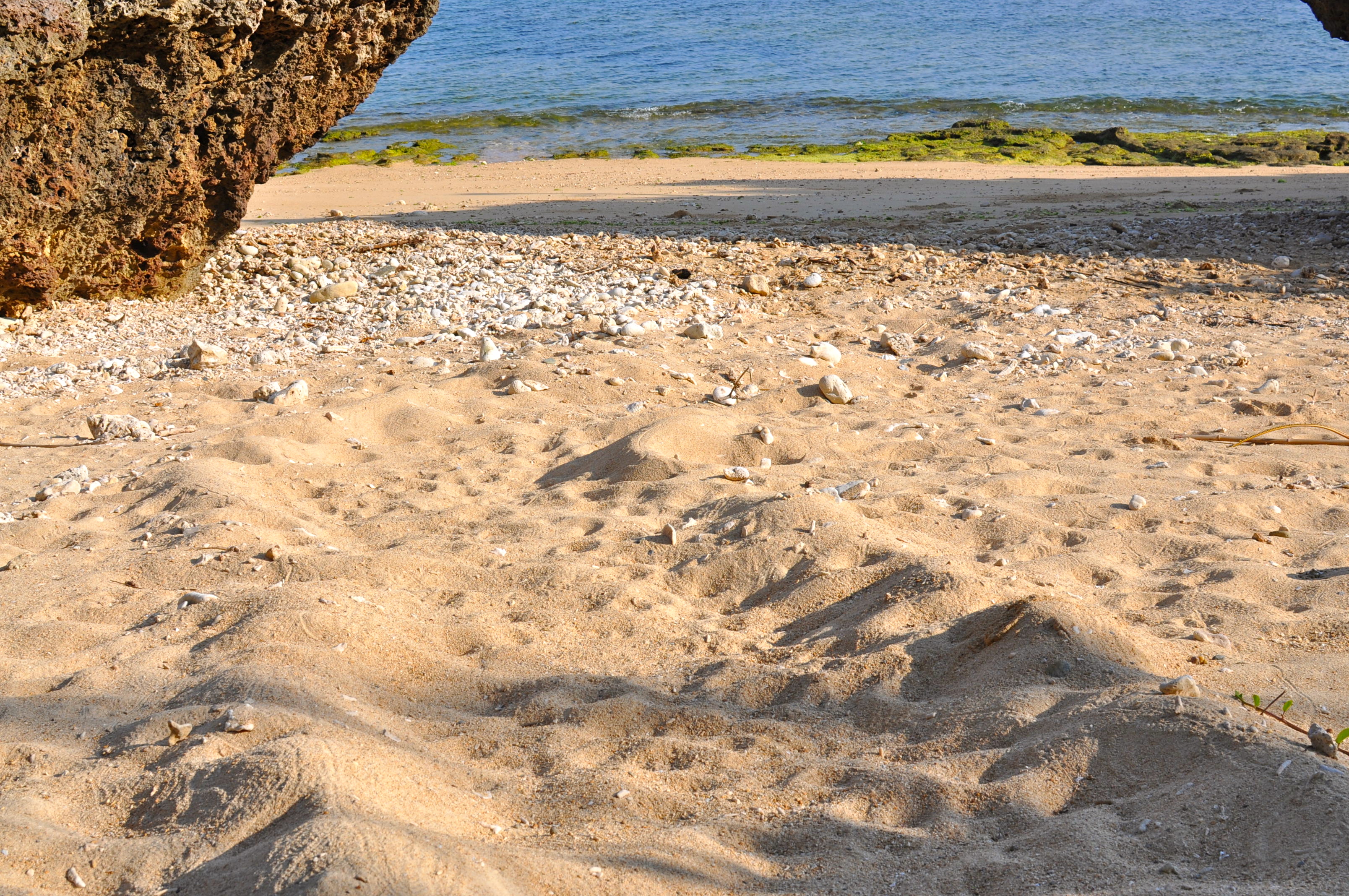 I go for my early morning stroll along the beach and there are more turtle tracks. The word tracks does n`t do justice. It is a kinda trench thing. I do not know if she was here last night or the night before as I was in Tokyo yesterday. I suspect the latter as the trench looks as if entropy has set in.