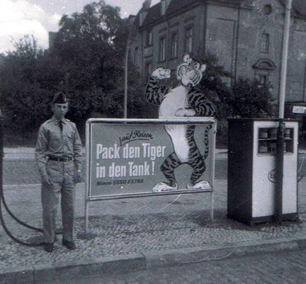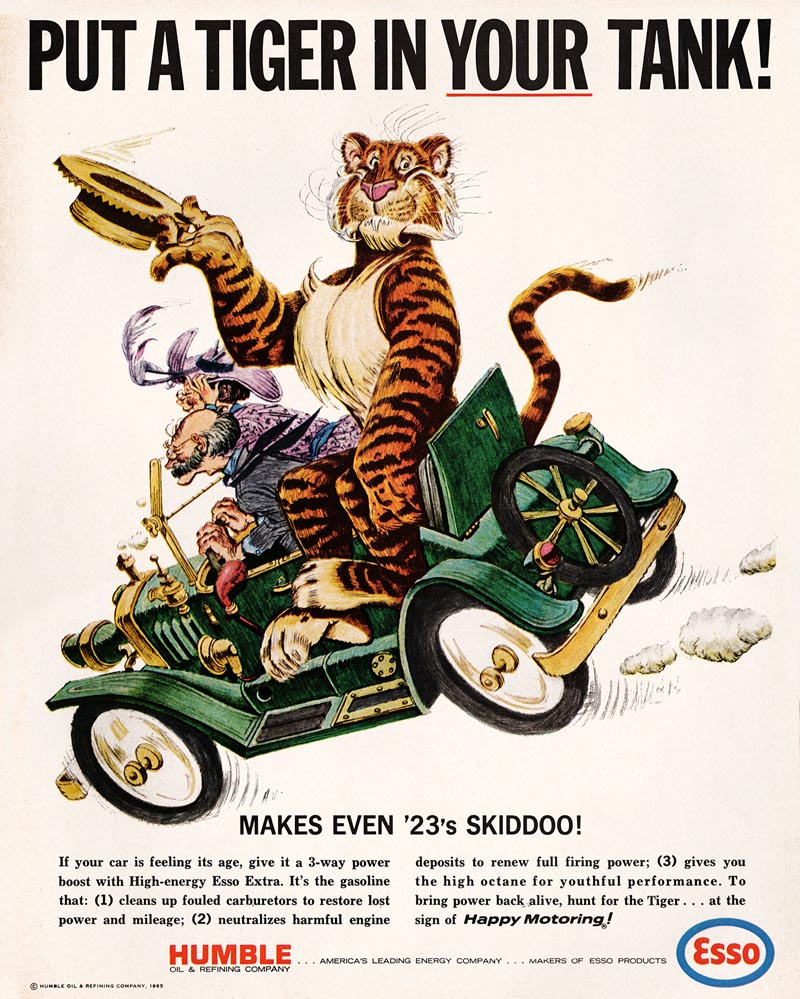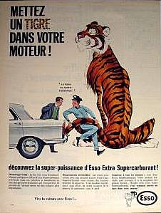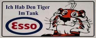 My cousins ran a petrol station in Scotland. It was an Esso station. I around 1962 I think Esso started an advertizing campaign based around the slogan “Put a Tiger in Your Tank.” This struck my imagination very hard or like a freight train, if you prefer. I collected stickers of the slogan in many languages.