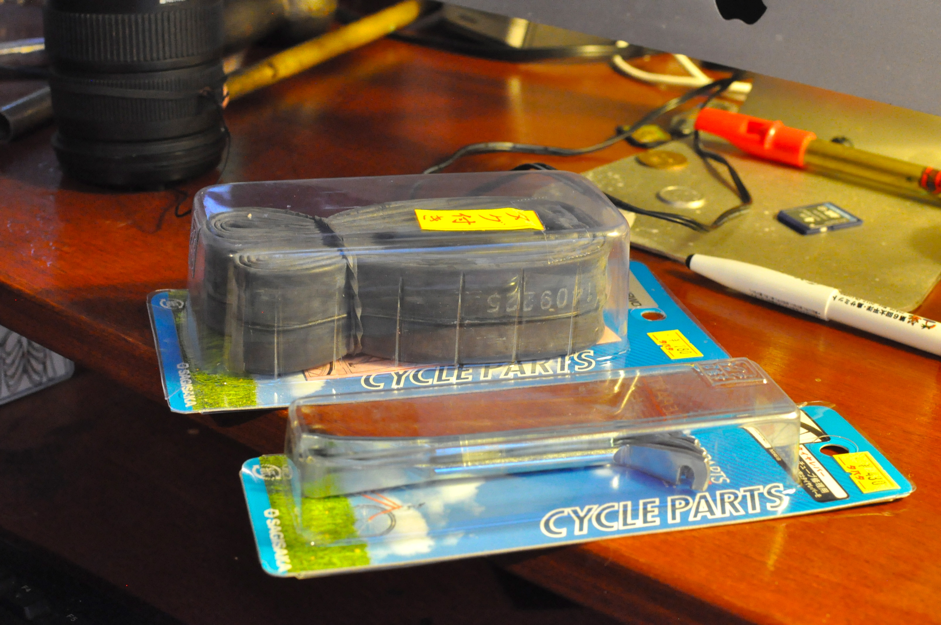 I rush out of a lunch with the conductor of the Tokyo Symphony Orchestra to the local mega hardware store. There I find a tyre, an inner tube and some tyre levers. The tyre and inner tube are a size larger than Big Red’s shoe size. You can’t always get what you want but you might find that you get what you need.