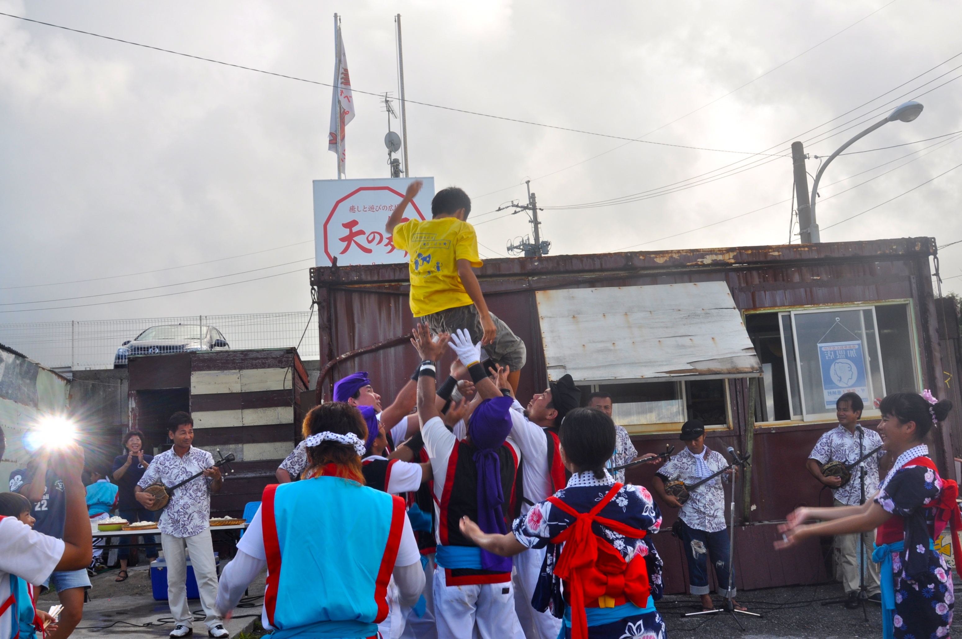 It is the greatest fun. When they finish the performance I join in on peace and love dance, which Chinen san taught me a few weeks ago. We drink beer and they start throwing people up in the air.