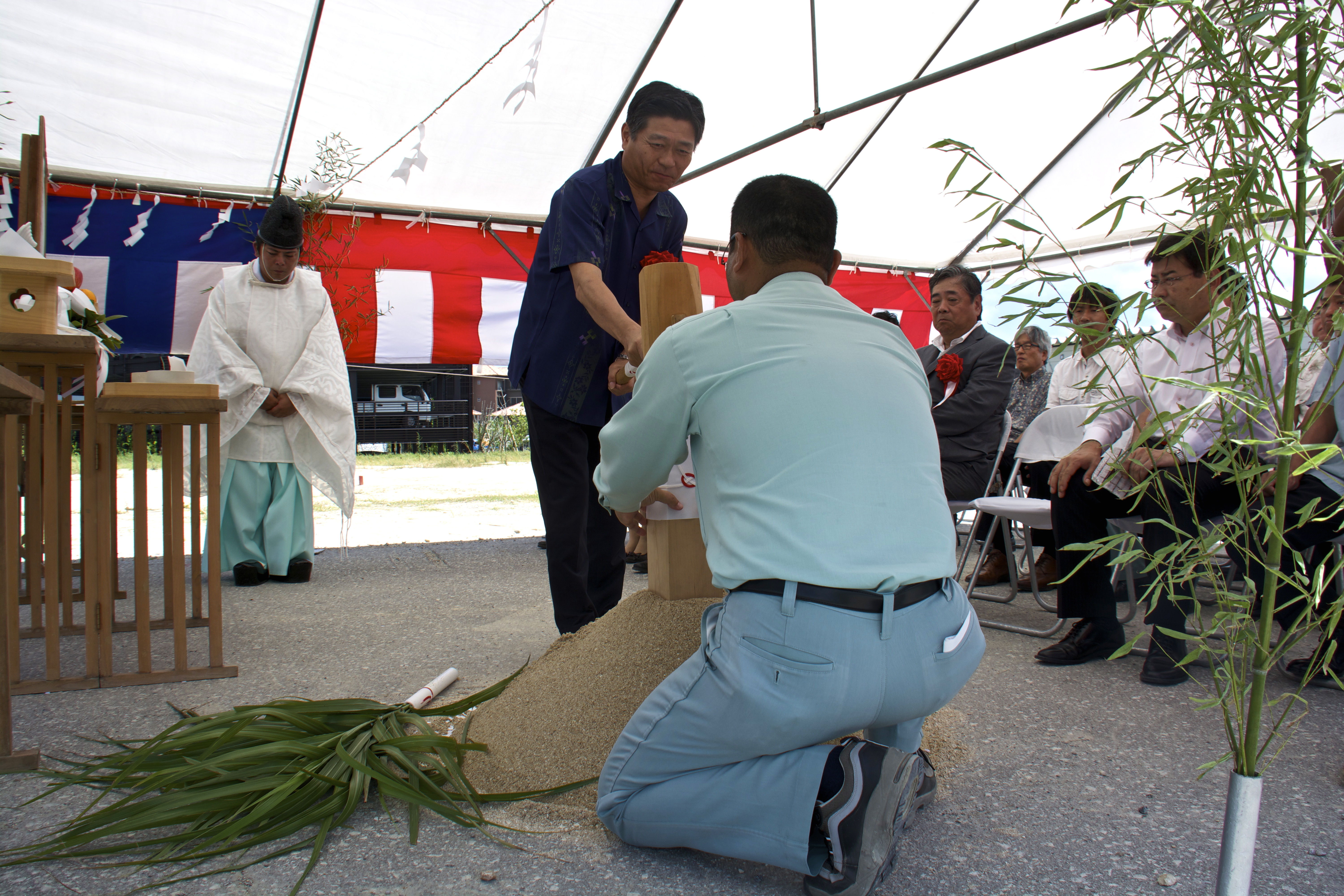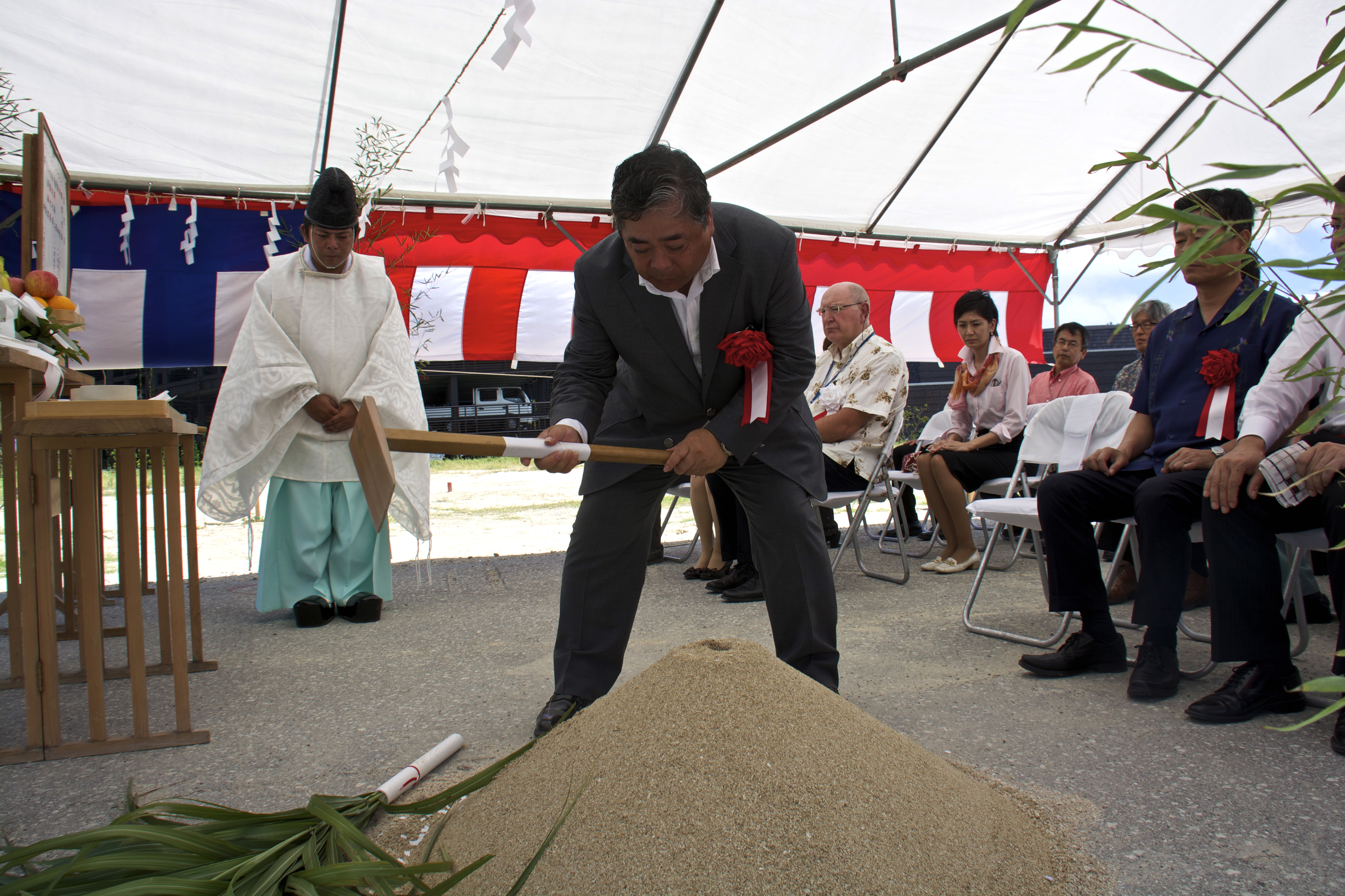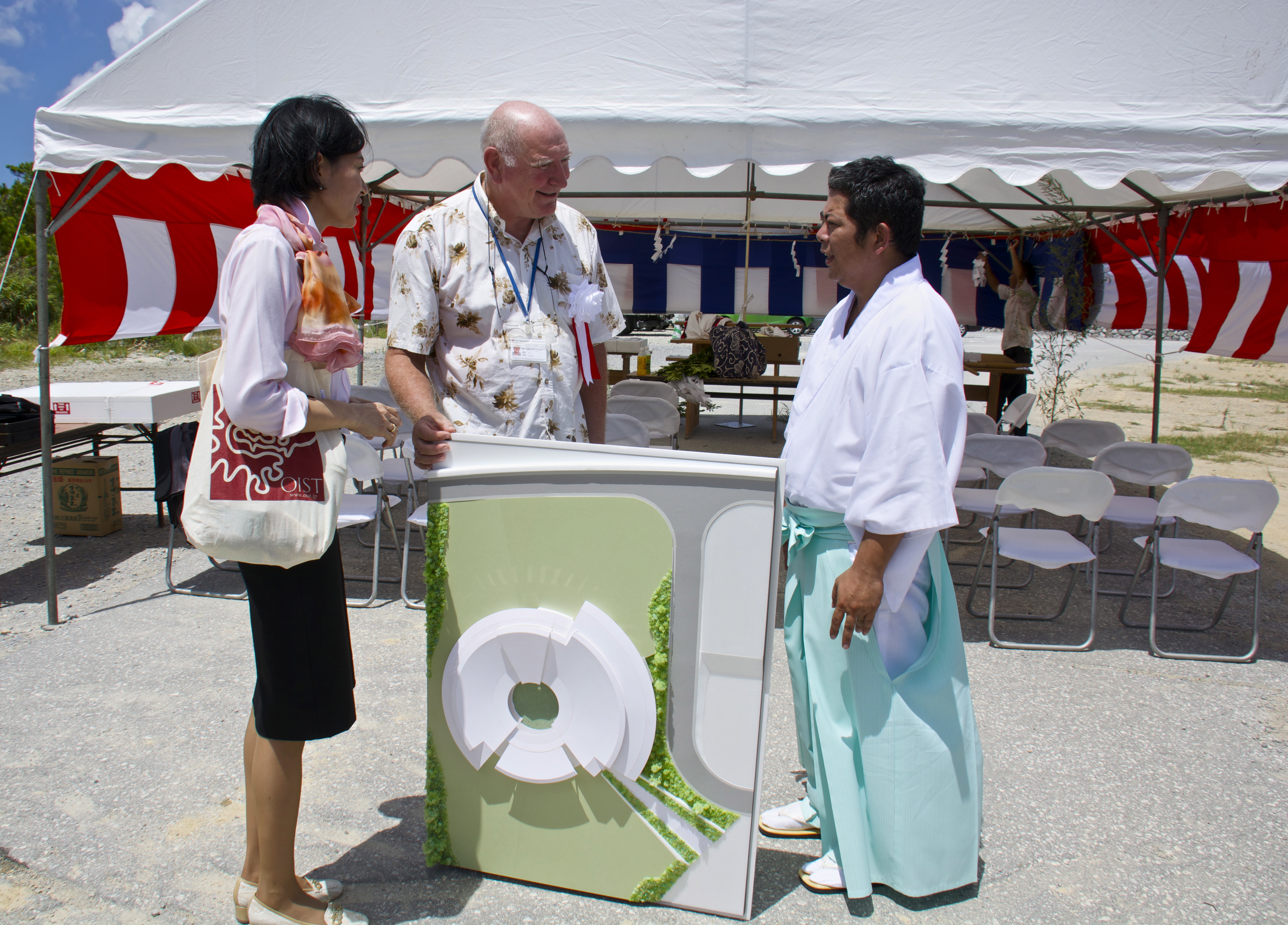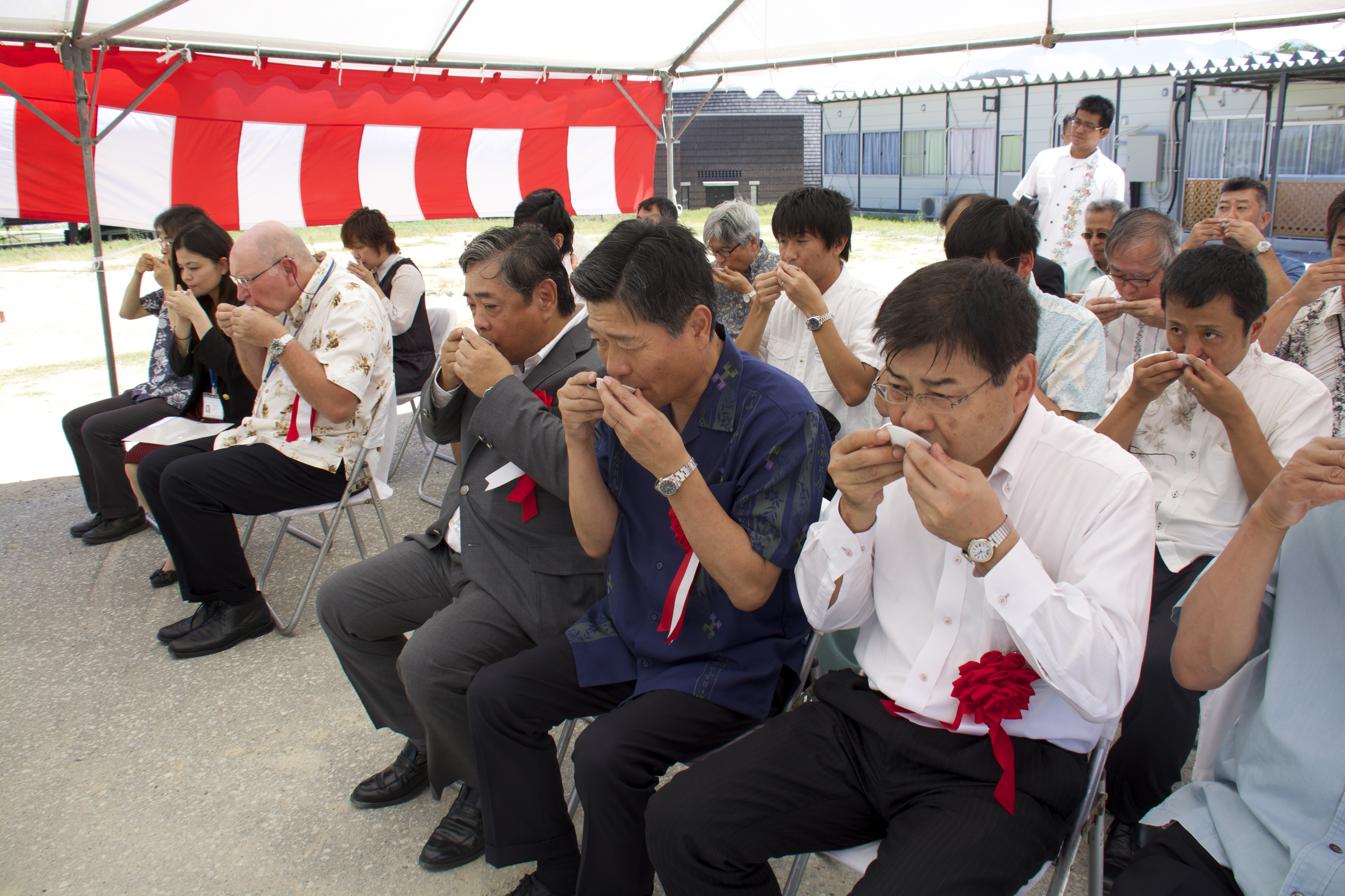 Today I had the privilege of representing the university at the Shinto ceremony to prepare for the construction of our new Child Development Centre. Before the diggers rumble in, the spirits who inhabit the place have to be warned and apologized to for the disturbance. There is an elaborate ceremony in 32 degree heat during which there is a series of incantations from the priest, miming of slashing, digging and hammering by the major players, a blessing of the four corners of the site, offerings of branches the significance of which I have forgotten, then finally sake drinking. It takes about an hour. It is really hot!