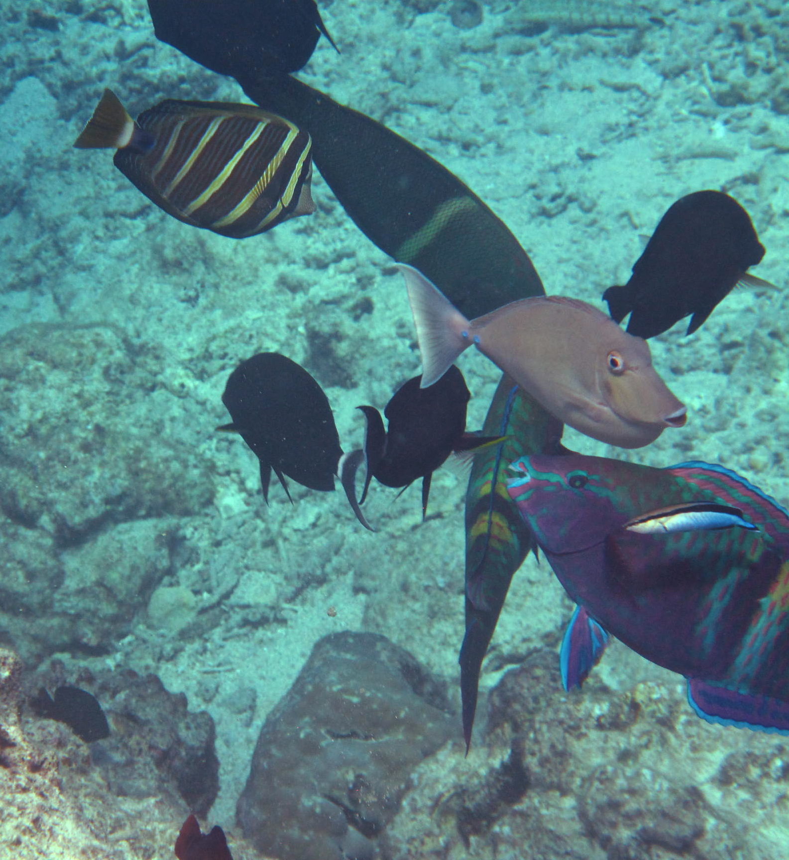 The day is so beautiful that, although I am very knackered subsequent to too two? much activity of late, I set off for an adventure in the Lagoon of Wonder in front of the house. The water is colder so I wear a full wet suit for the first time since May. Wet suits add buoyancy. Stupidly I do not add any weight resulting in difficulty getting under the sea and once down, a constant battle against floating up to the surface. This, plus being ill and scant of breath make it a frustrating dive.