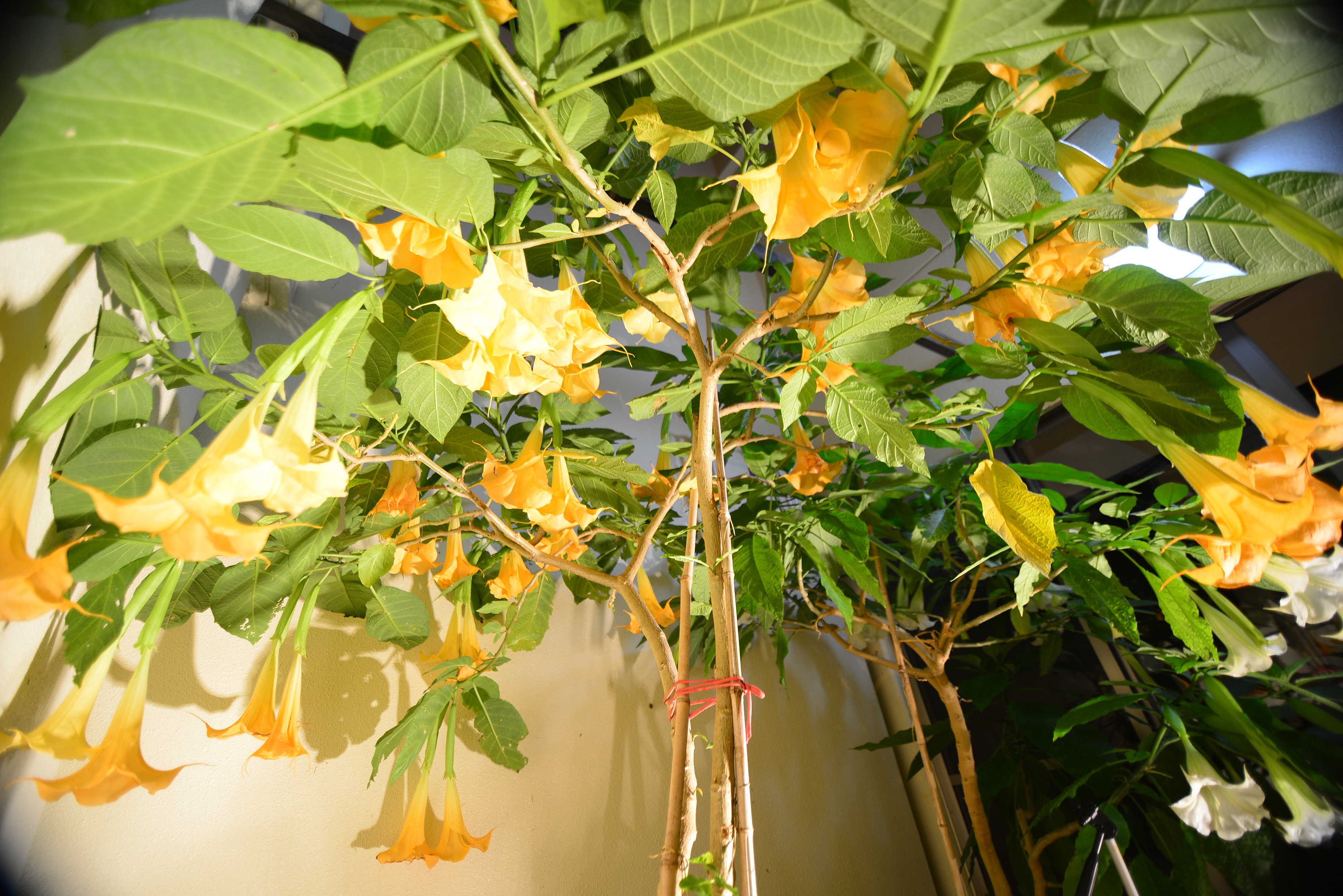 I have 3 Brugmansia in my secret garden, two of which have exploded into a riot of Spring. This makes me feel good.