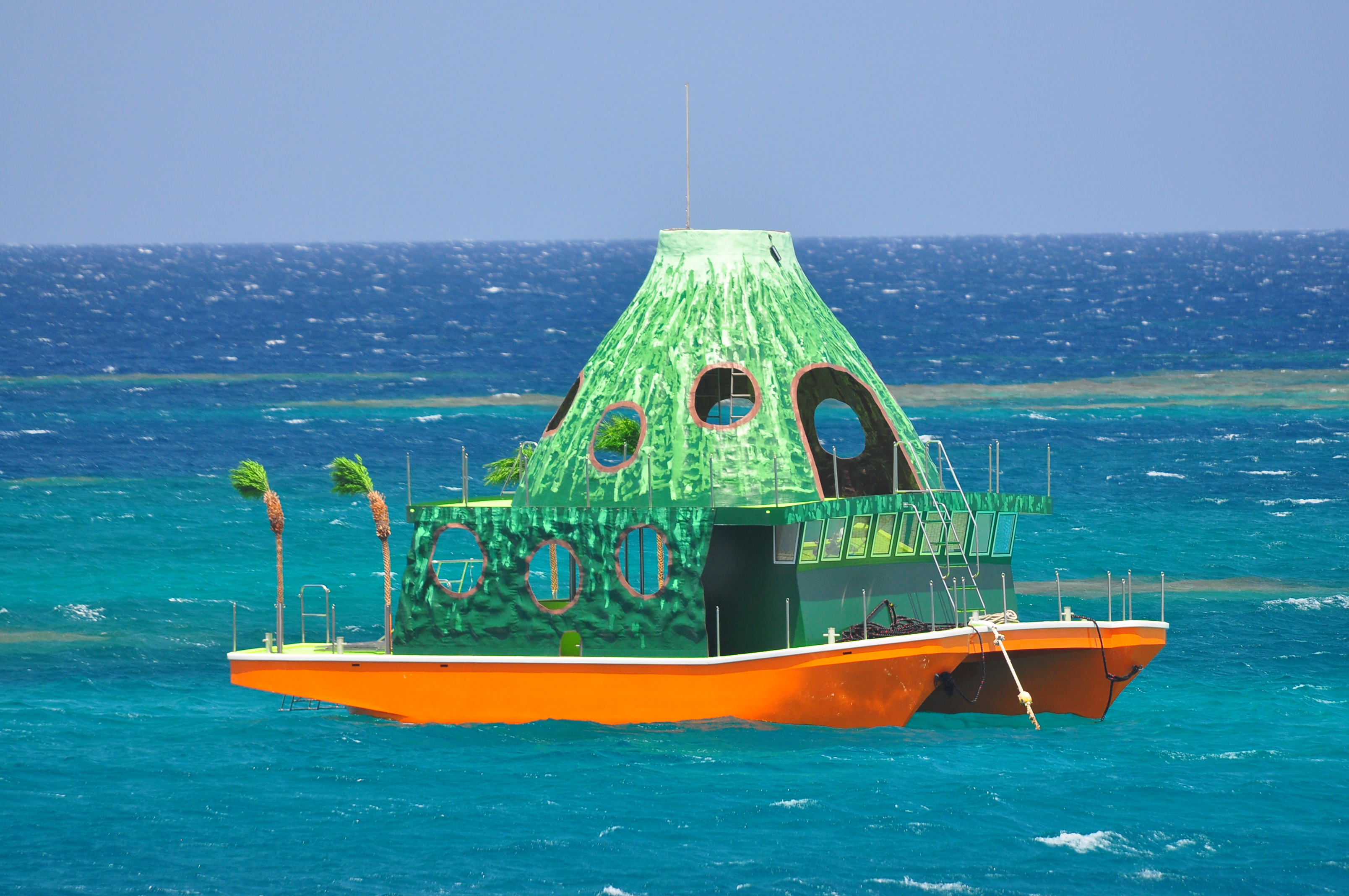 The island is definitely stirring. Summer is coming and with that loads of tourists. In fact this is the start of Golden Week when Japan takes off. The hotels are sprucing themselves up. One near me has anchored two of the strangest looking craft just off their beach. They are clearly diving platforms but their design is pleasingly nuts.