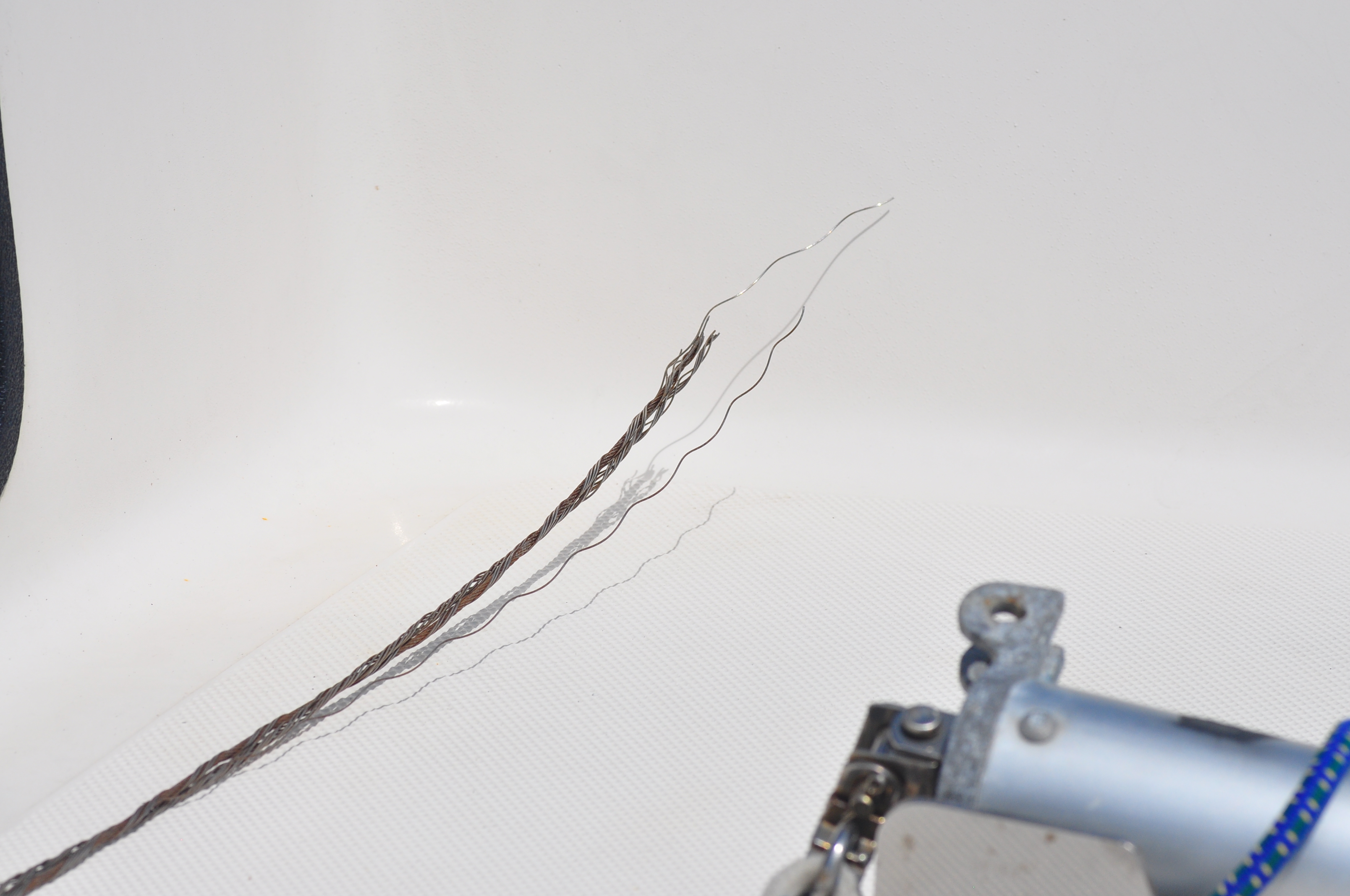 Anyway one of the side-stays had snapped. My fault as it was probably not tight enough and the battering of the wind made the mast bang from side to side. Poor little side-stay.