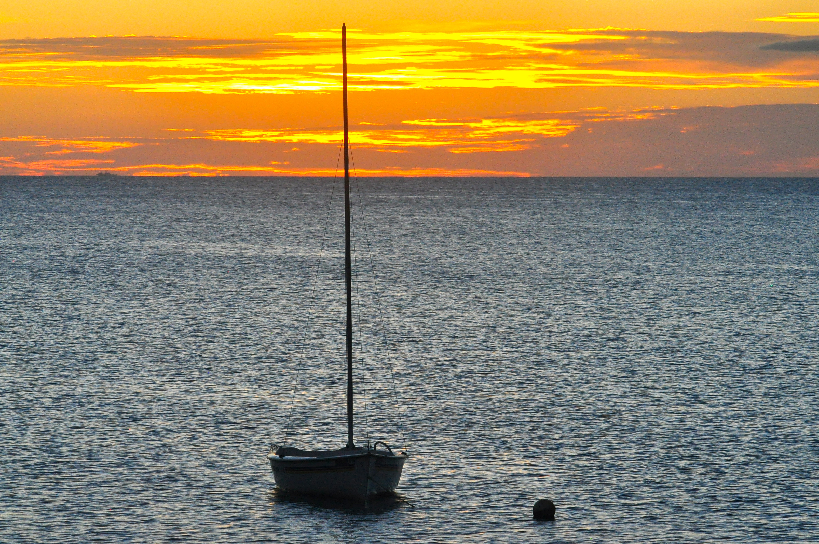 I get home in no time but just keep going down to Cape Zampa, another couple of miles down the coast. I check on the Black Browed Terns and then turn around to beat back to the bonny anchorage outside my house. All goes well until I get very close to the mooring. It is so shallow that I have to raise the center board. In so doing I drift hopelessly in the very light wind. I have to go about and come in on a different angle. After a couple attempts I pick out the mooring and we are home again without ever having used the motor. Hooray.