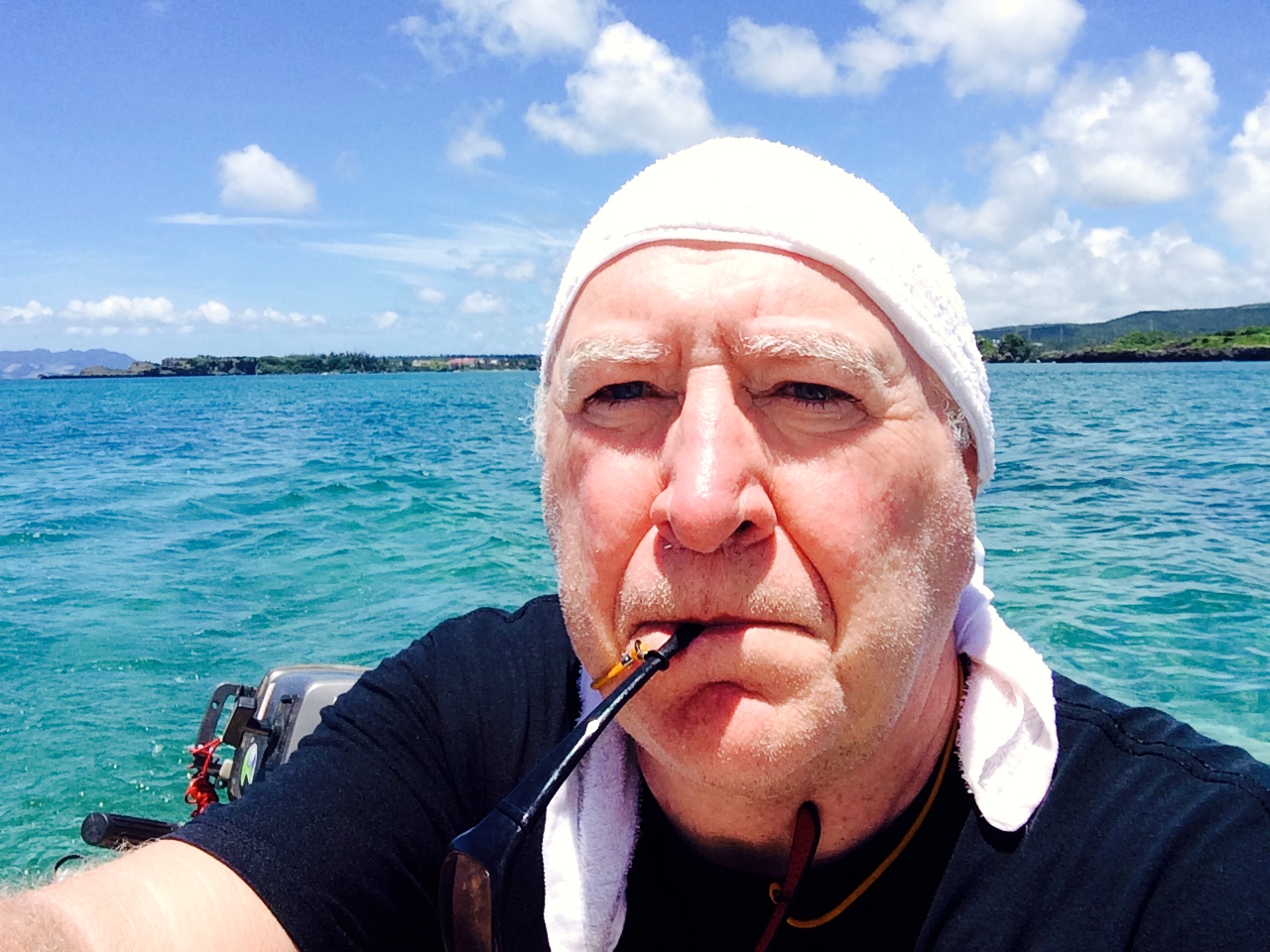 I am up early and prepare for the voyage. I put on sunscreen, put on my hat, put water beer, suchi, onigiri into the icebox and clamber into Dileas. I both forgot my camera and to bring sunscreen. Turquoise lagoon, deep blue sea beyond the reef, sky er blue but not so blue as the sea beyond the reef, sun a mixture of pale yellow and white but imbued with much power. The sea is warm, the air is hot and there is a gentle wind coming offshore.