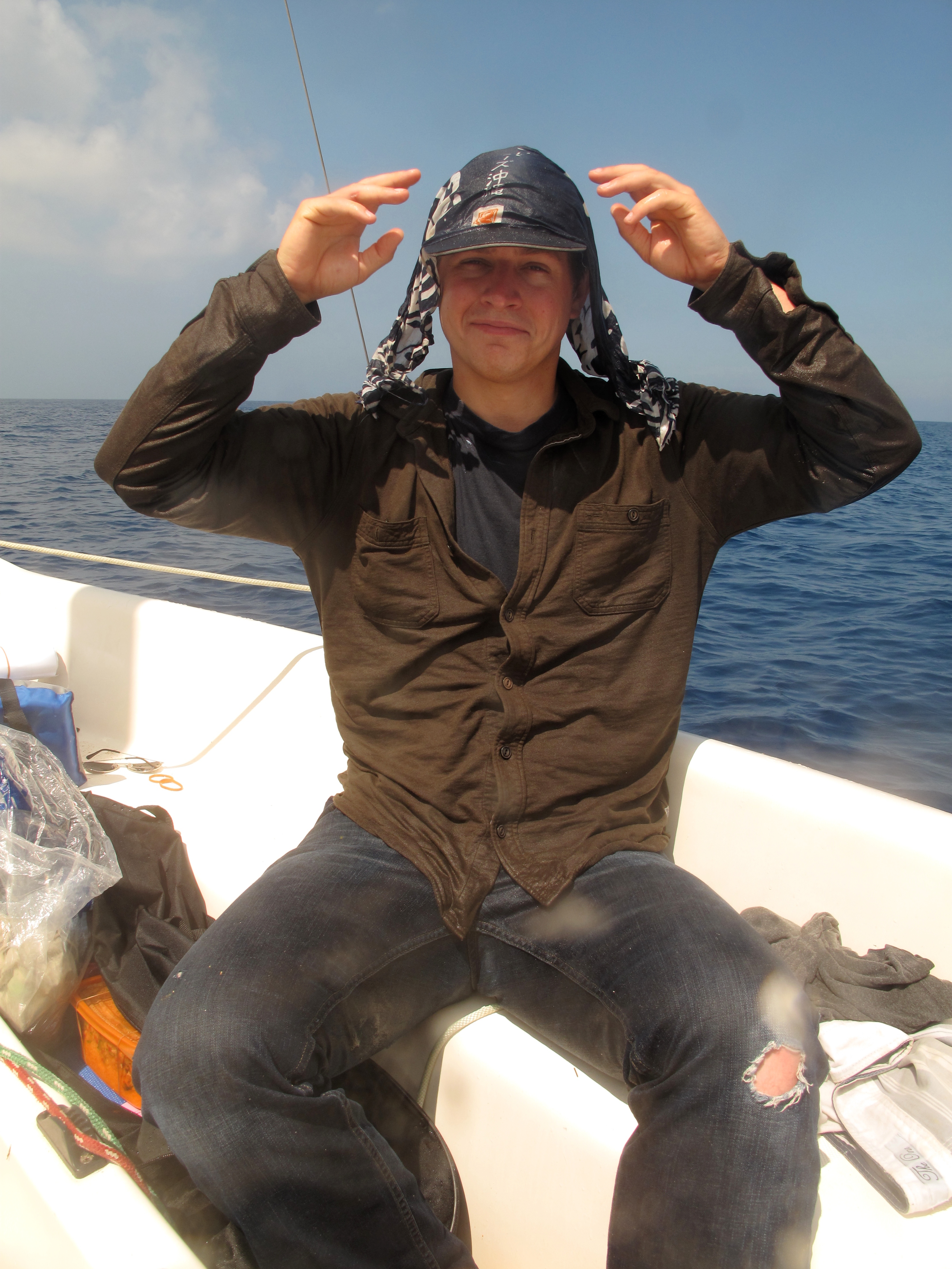 By now we have had a lot of sun exposure and Ben adjusts his clothing
